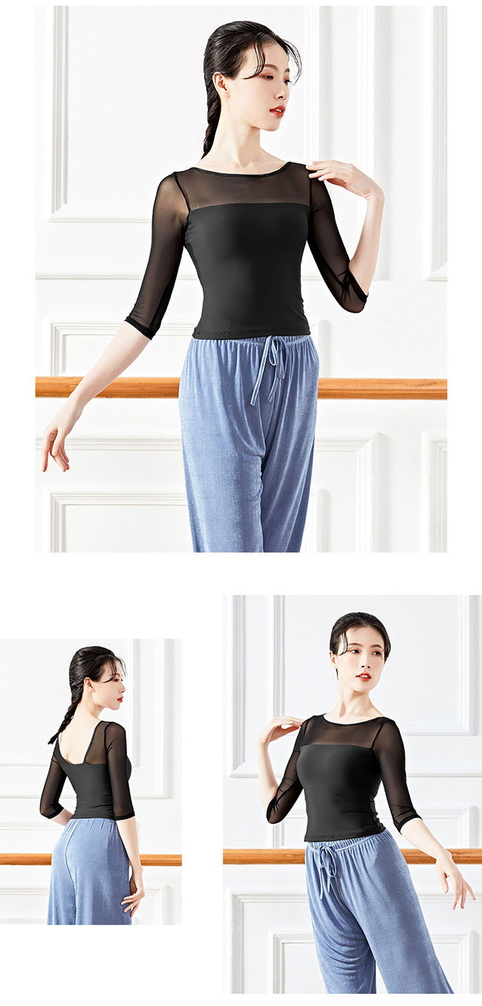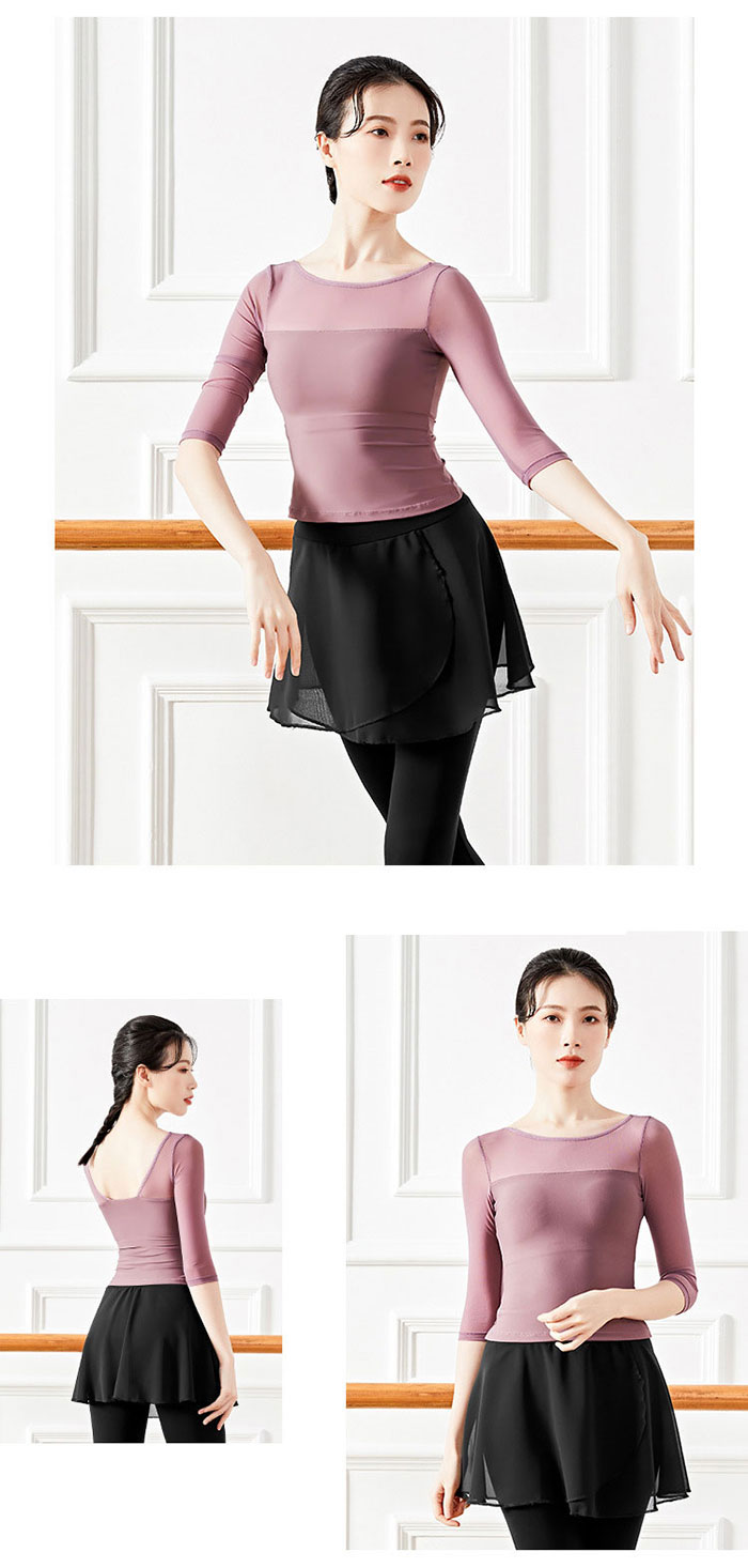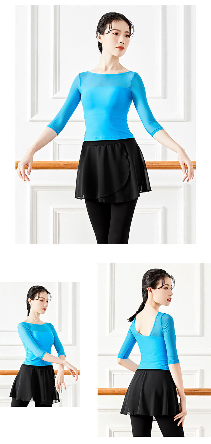 バレエ トップス 大人 五分袖 ダンス ホワイト ブラック ブルー グレーブルー ブラウン S M L XL XXL