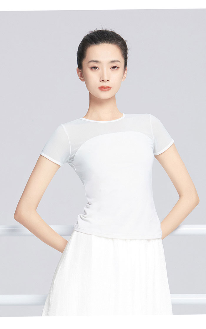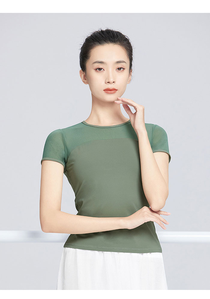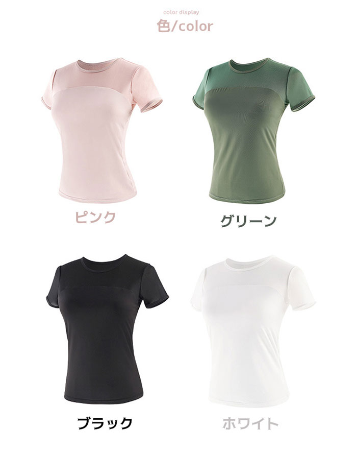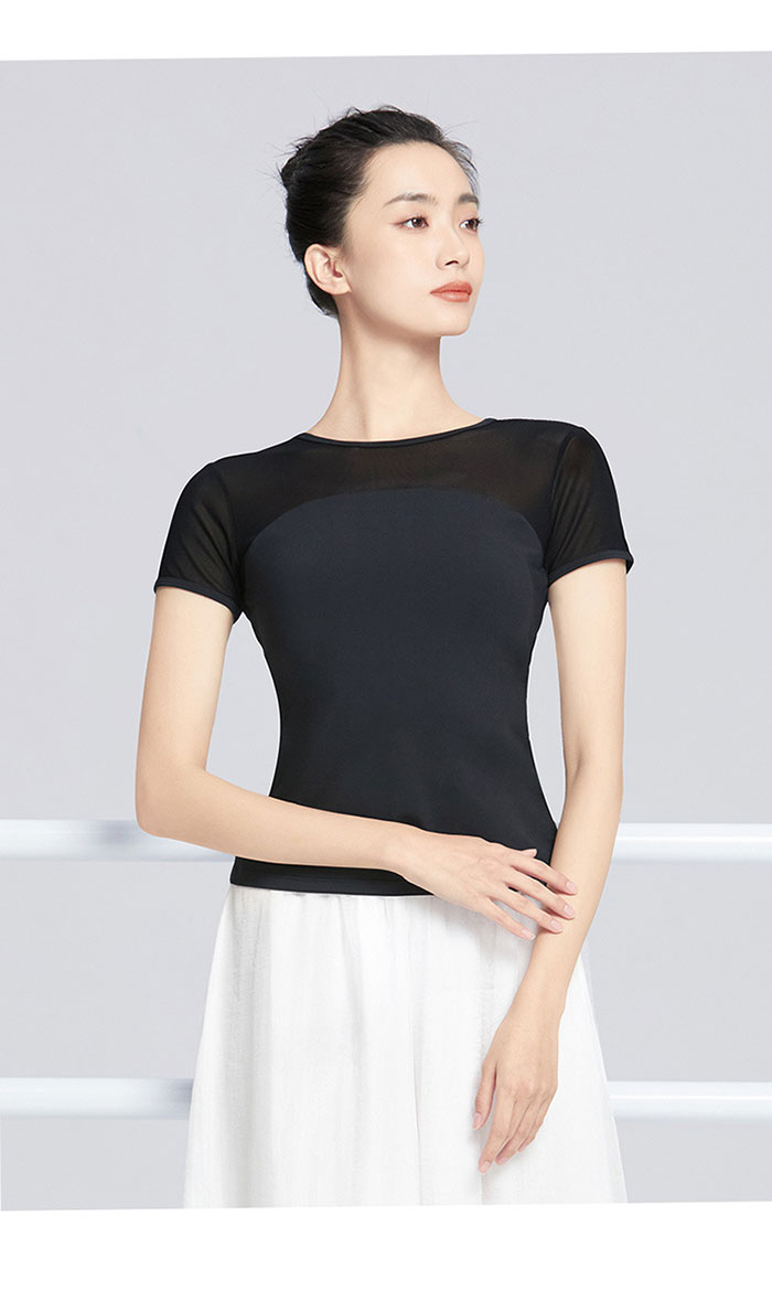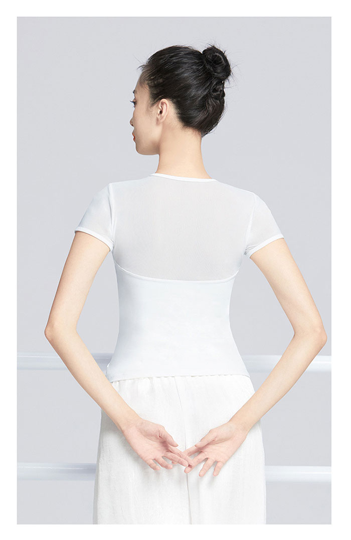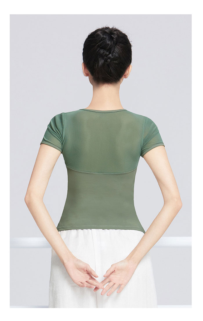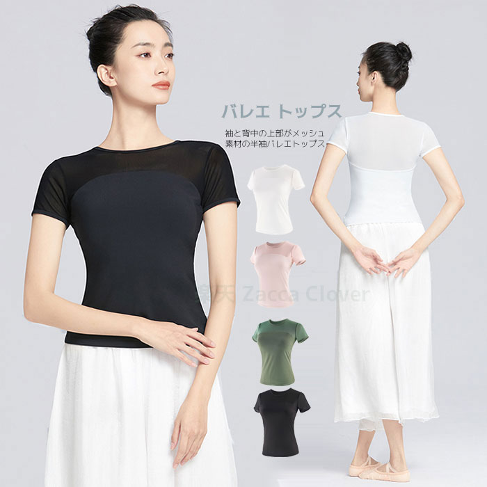 バレエ トップス 半袖 ストレッチメッ ブラック ホワイト ピンク グリーン S M L XL XXL