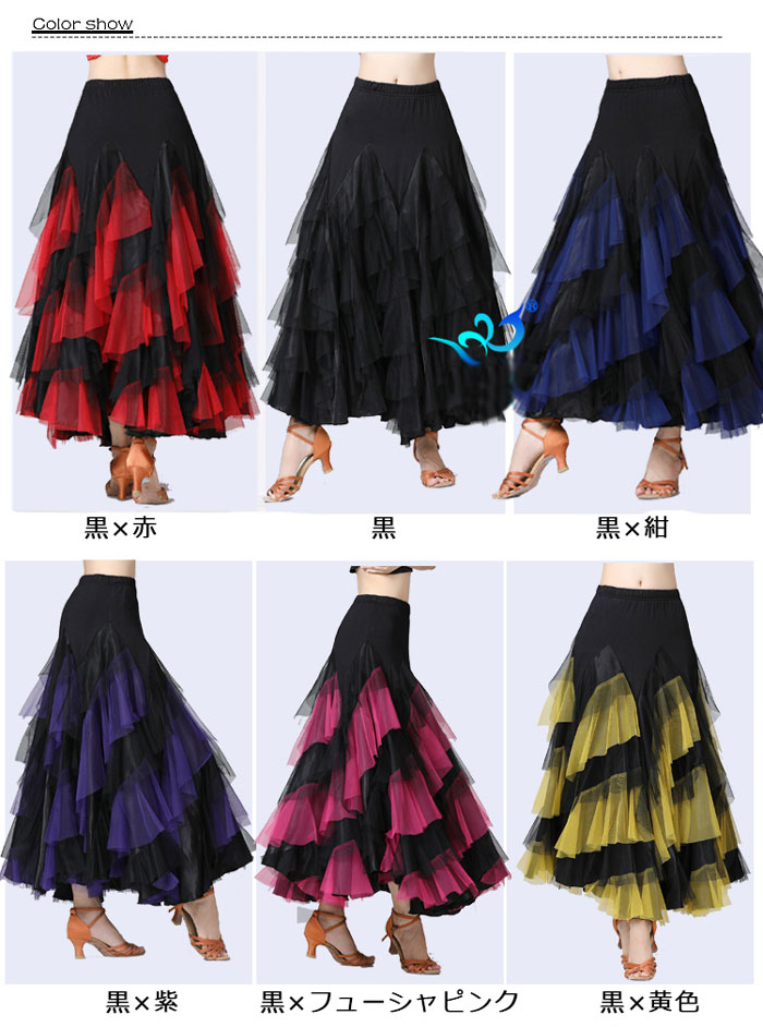 フラメンコ スカート ファルダ フリル 体操 ダンス フラメンコ スカート 続々入荷中 黒×赤 黒 黒×フューシャピンク 黒×紺 黒×黄色 黒×紫