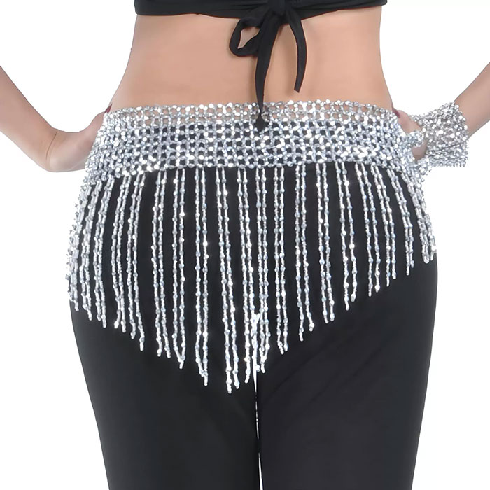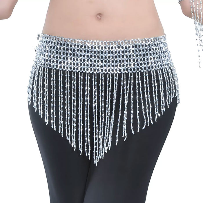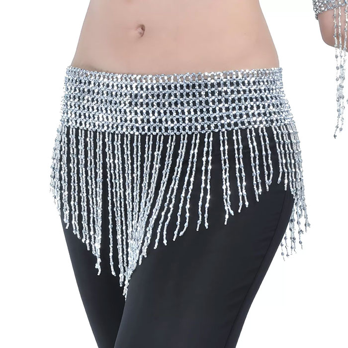 ベリーダンス ヒップスカーフ ビーズ スポーツ アウトドア 豊富 ゴルード シルバー