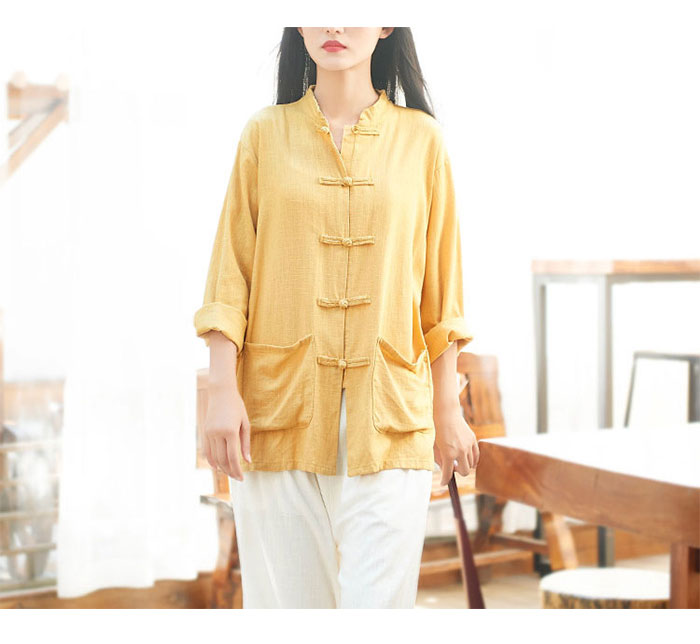 リネン ブラウス レディース 長袖 リ トップス シャツ ブラウス 超目玉商品 ホワイト イエロー ブラック