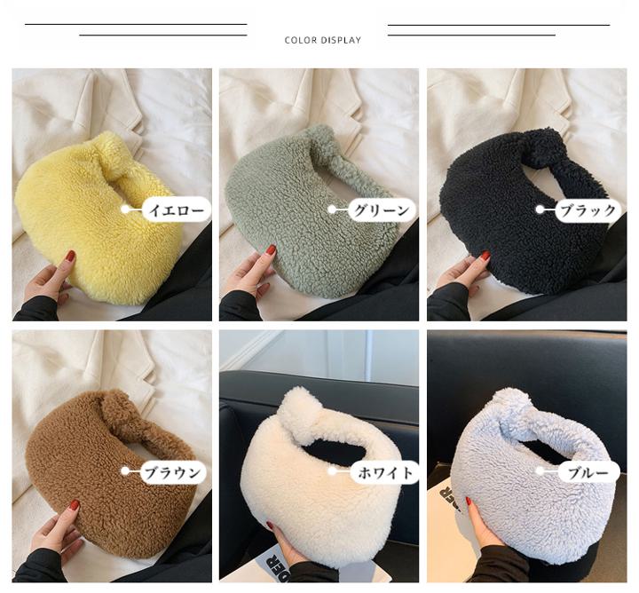 フェイクファーハンドバッグ トートバッ バッグ 小物 ブランド雑貨 新登場! ブラウン イエロー ホワイト ブルー ブラック