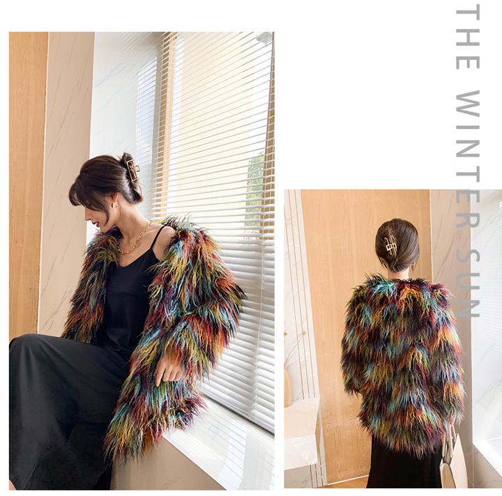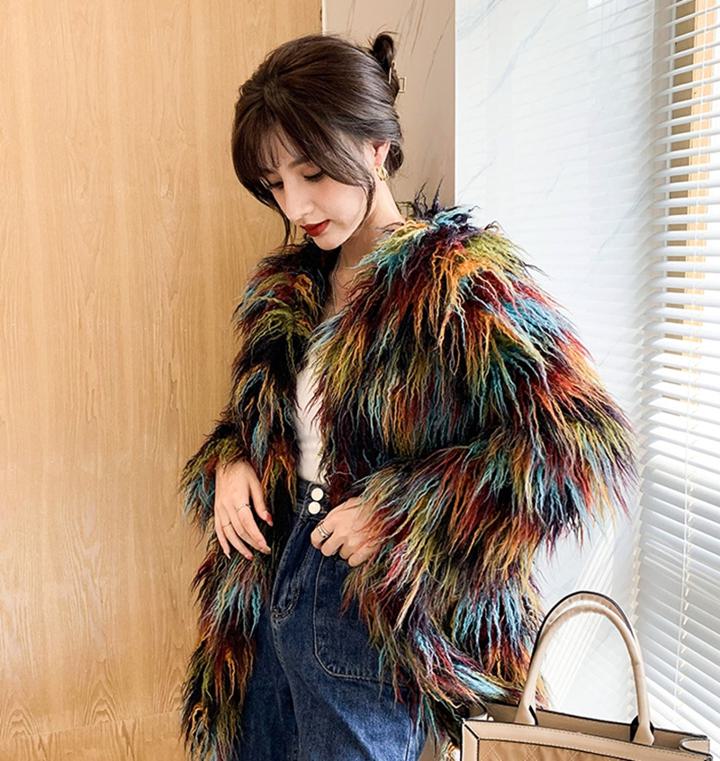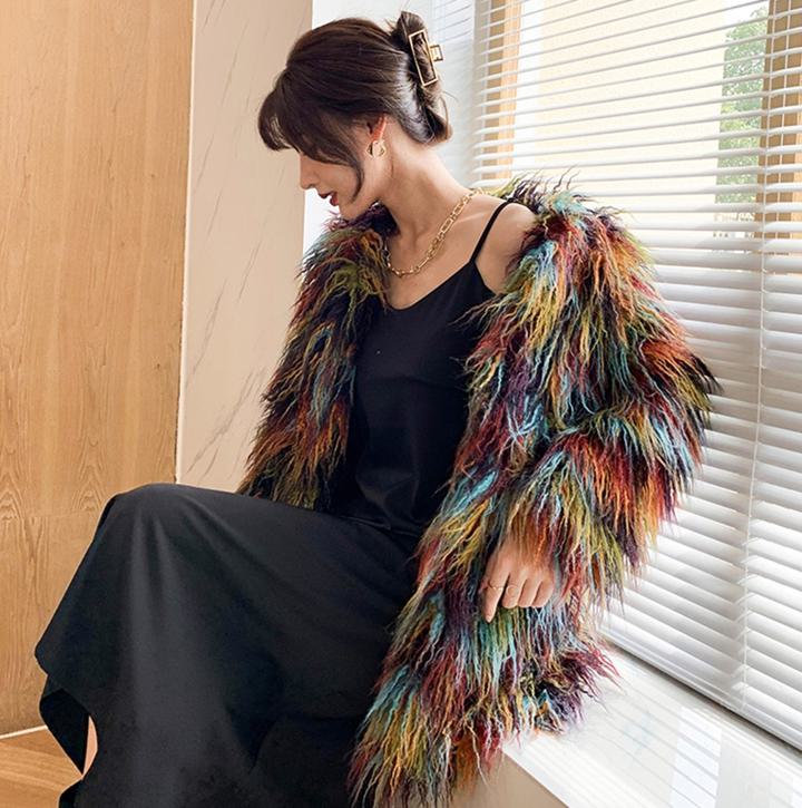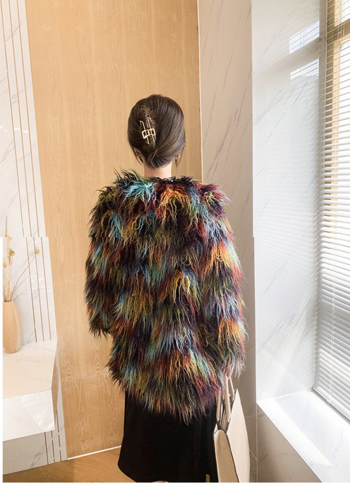 レインボーシャギーコート ファーコート レディースファッション 早い者勝ち S M L XL XXL