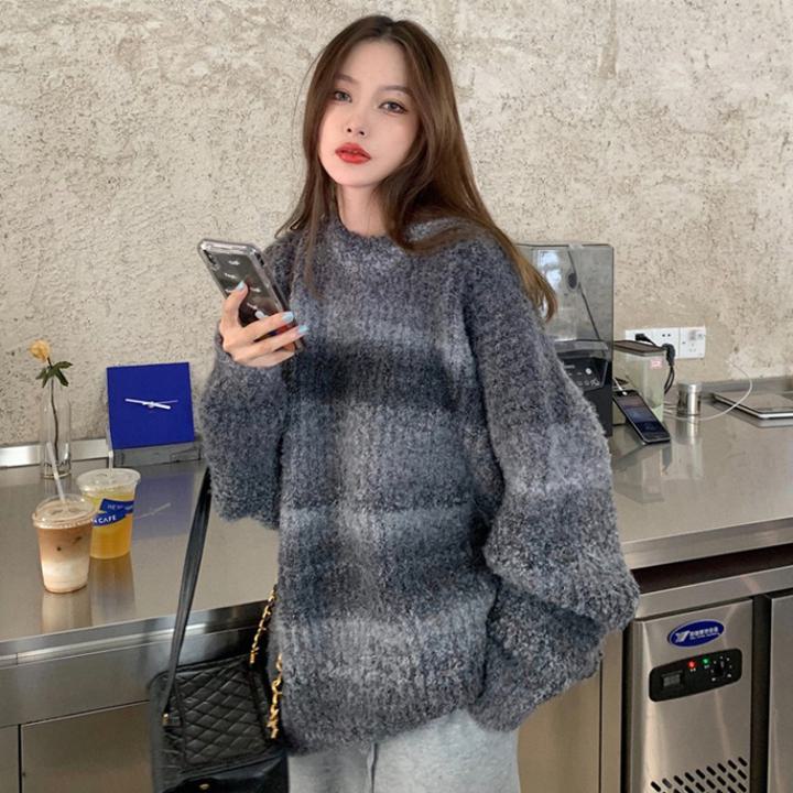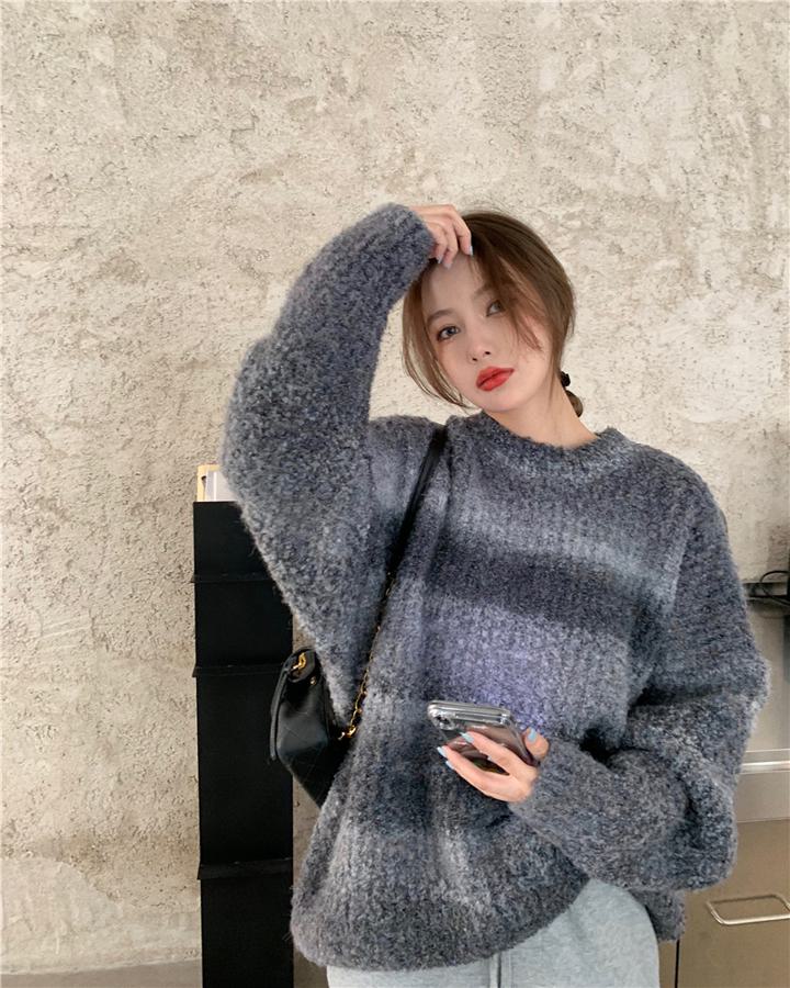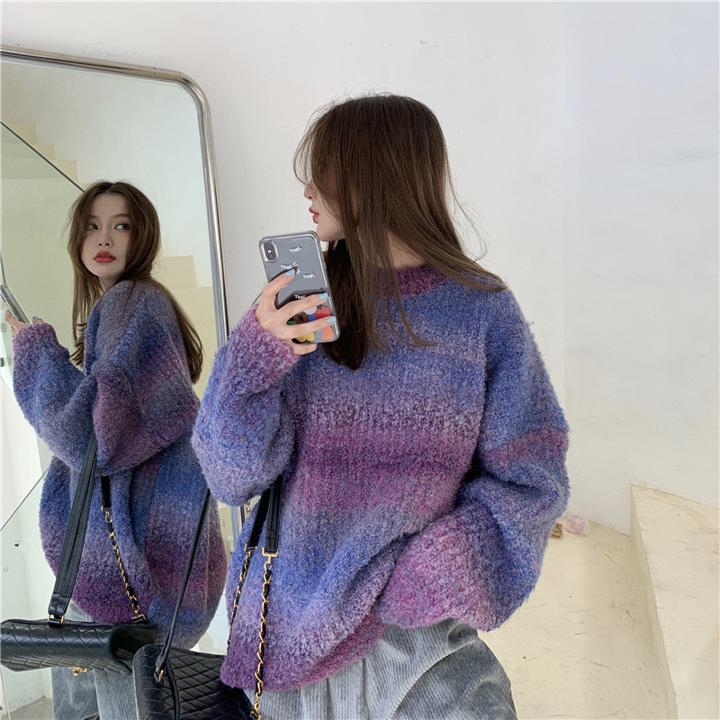 グラデーション オーバーサイズニット トップス ニット セーター セーター 早い者勝ち パープル グレー ブルー M L XL XXL