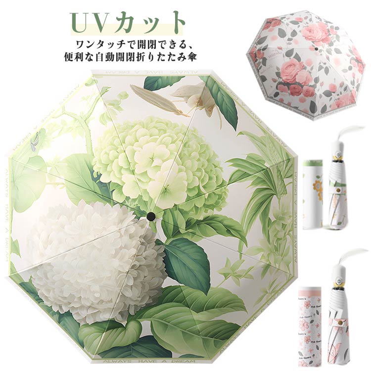 ワンタッチ 折りたたみ傘 自動開閉 完 バッグ 小物 ブランド雑貨 早い者勝ち ローズ グリーン ひまわり ベゴニア デイジー