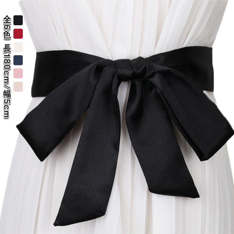 全6色 サテンタッチ サッシュリボン バッグ 小物 ブランド雑貨 新作 ベージュ ブラック ピンク ネイビー ホワイト レット