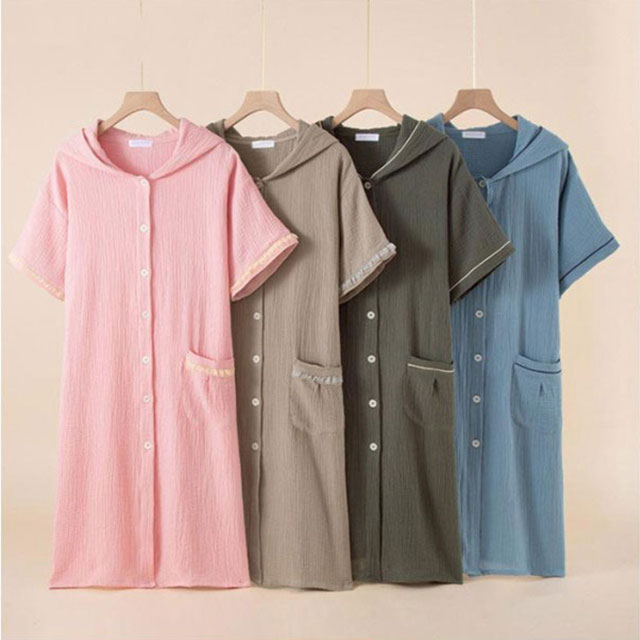 バスローブ ガーゼ 吸水 速乾 前ボタ タオル バスタオル 続々登場 ブルー グリーン ピンク カーキ L XL 2XL