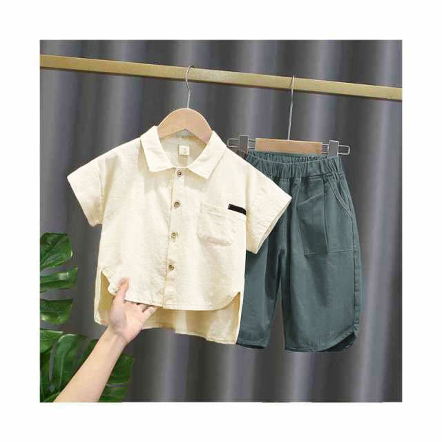 シャツ ブラウス キッズ 男の子 子供 キッズ ベビー マタニティ 続々登場 グリーンセット ベージュセット 90 100 110 120 130 140