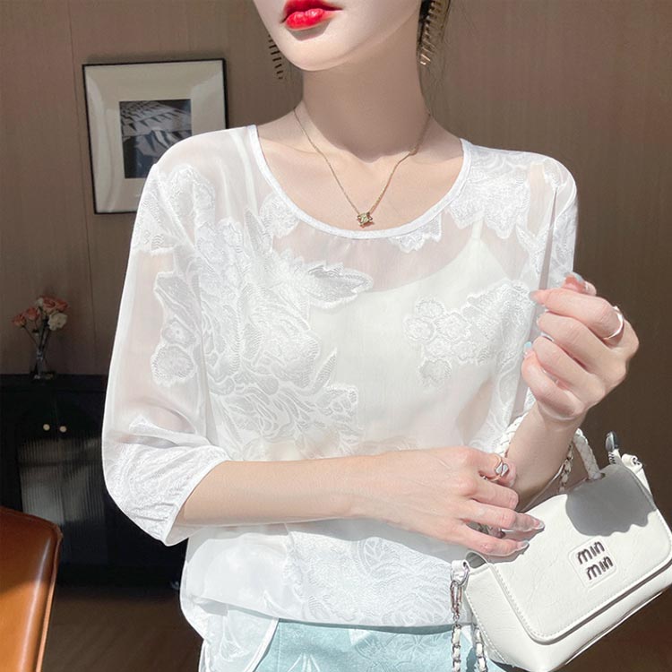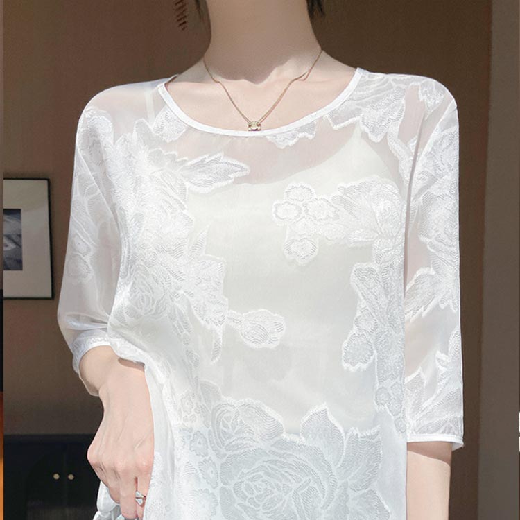 シアートップス Tシャツ ブラウス 五 レディースファッション 人気 ホワイト ベージュ ブラック M L XL 2XL