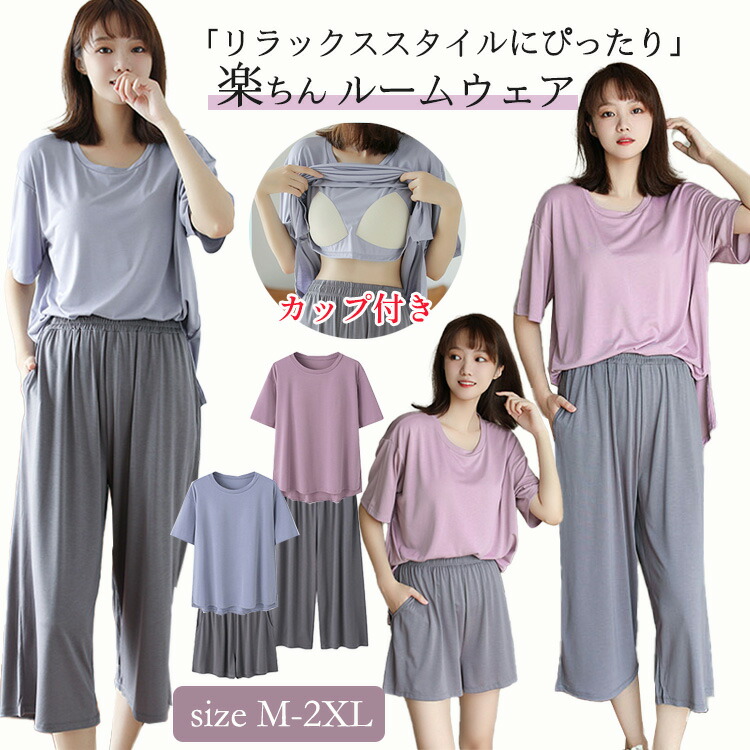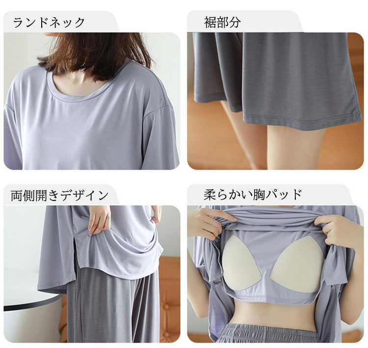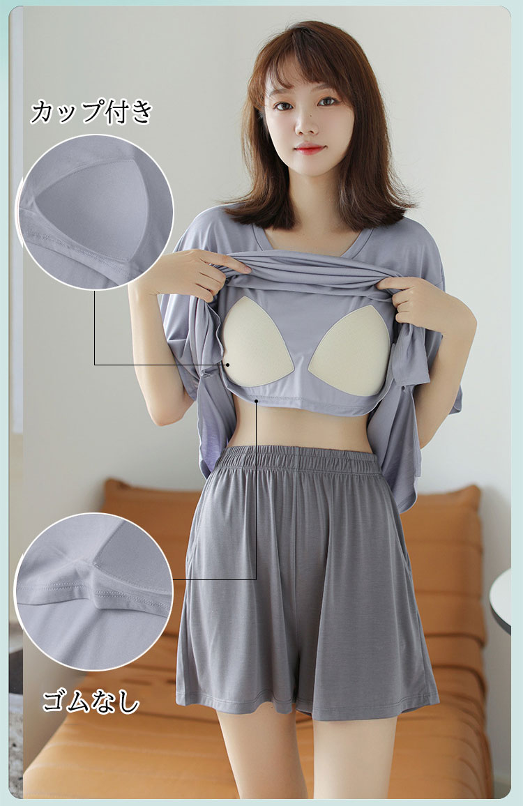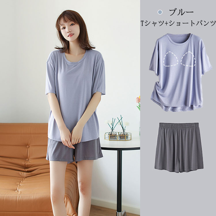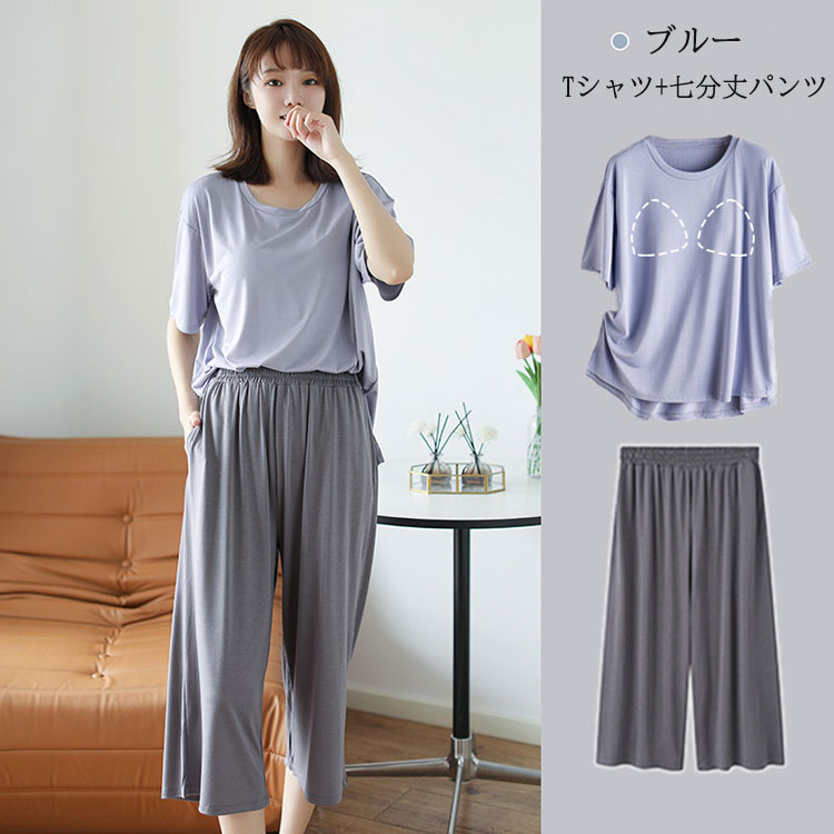 パッド付き ルームウェア パジャマ レ インナー 下着 ナイトウエア 通販 ブルー(ショートパンツ) ブルー(七分丈パンツ) パープル(ショートパンツ) パープル(七分丈パンツ) M L XL 2XL