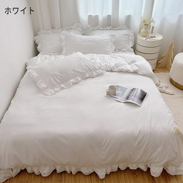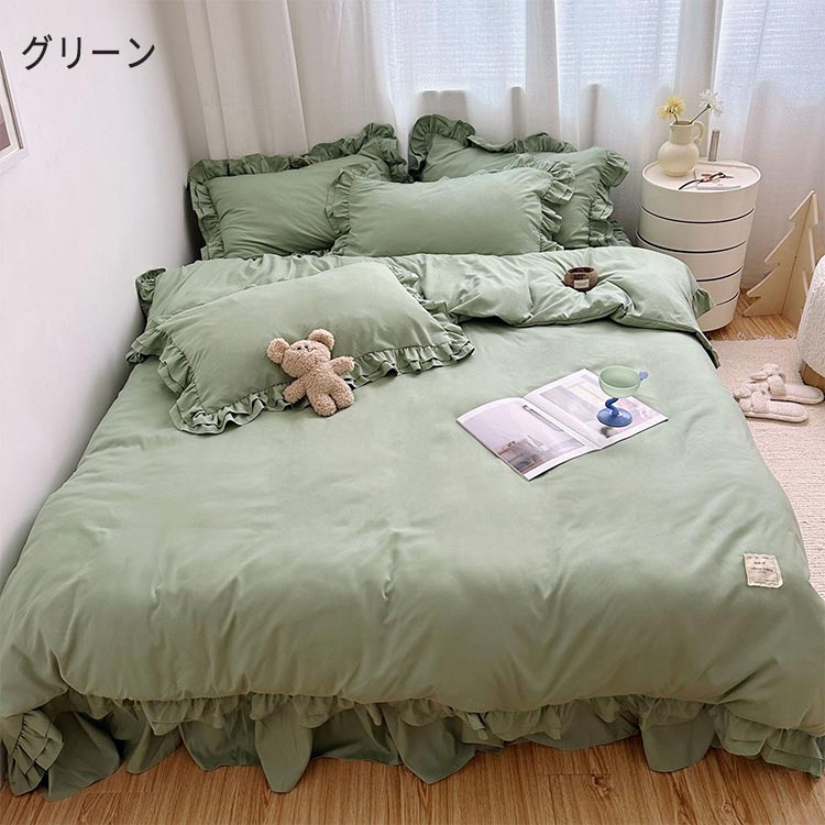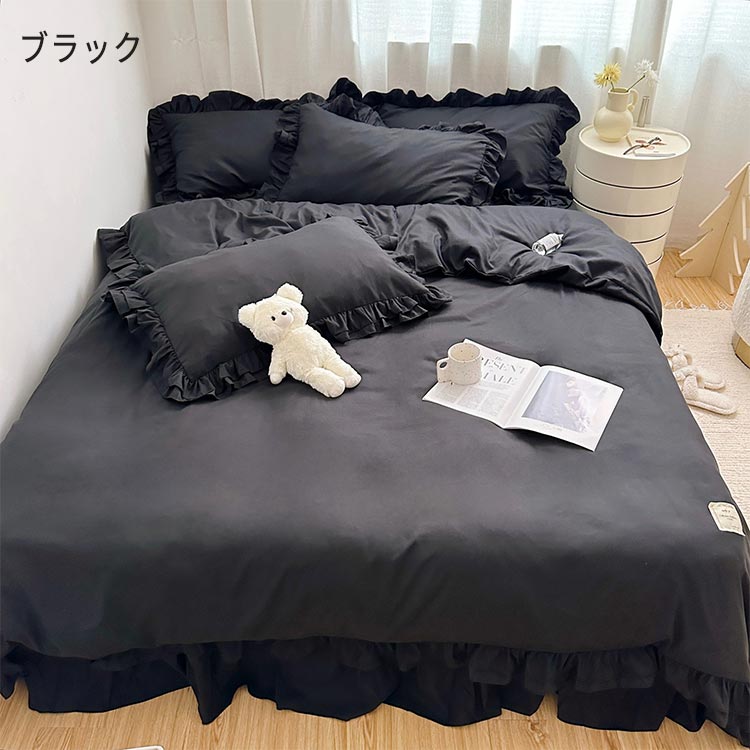 姫系 布団カバー 3点セット 4点セッ インテリア 寝具 収納 人気 グレー ブルー ホワイト ピンク グリーン パープル ブラック シングル セミダブル ダブル