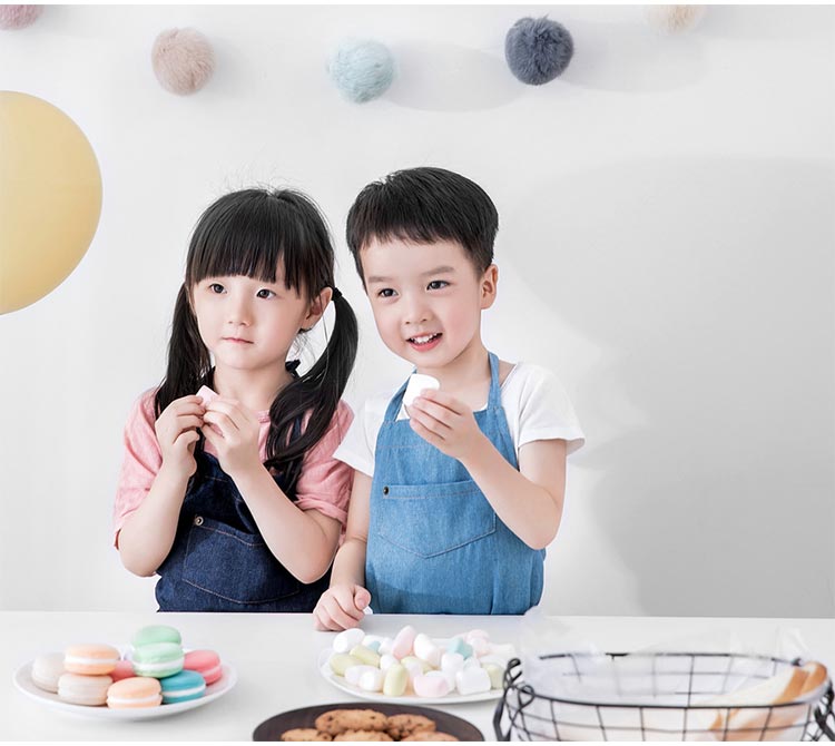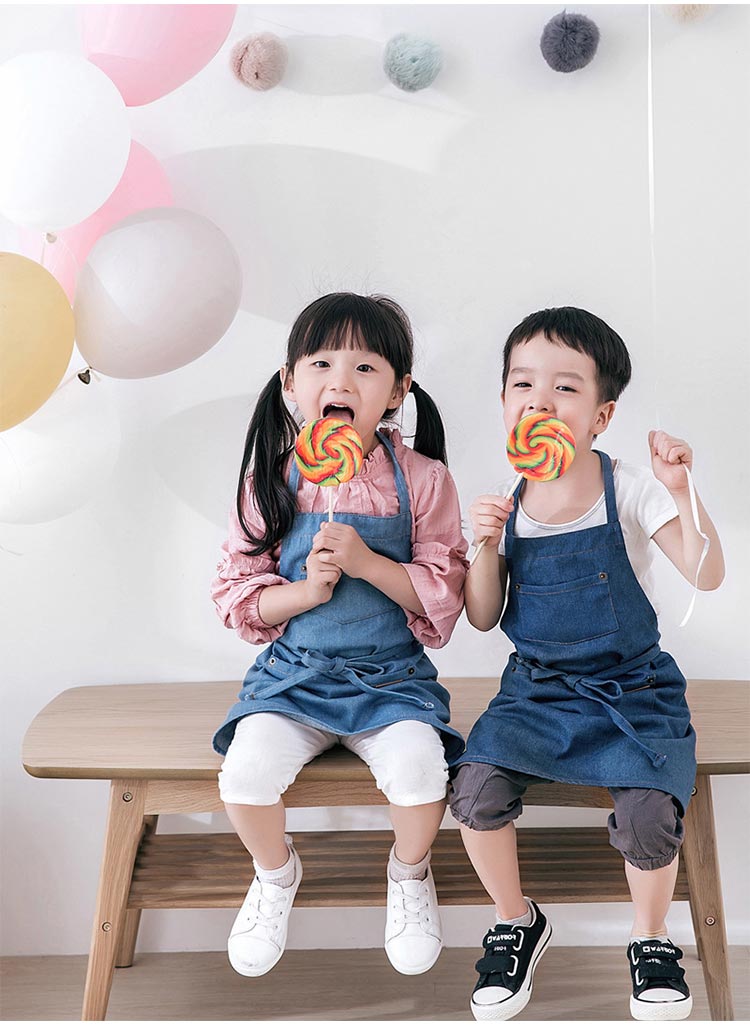 デニムエプロン かぶるだけ キッズ 子 配膳用品 キッチンファブリック エプロン 三角巾 キッズ用エプロン 豊富な品揃え ブルー ライトブルー S M