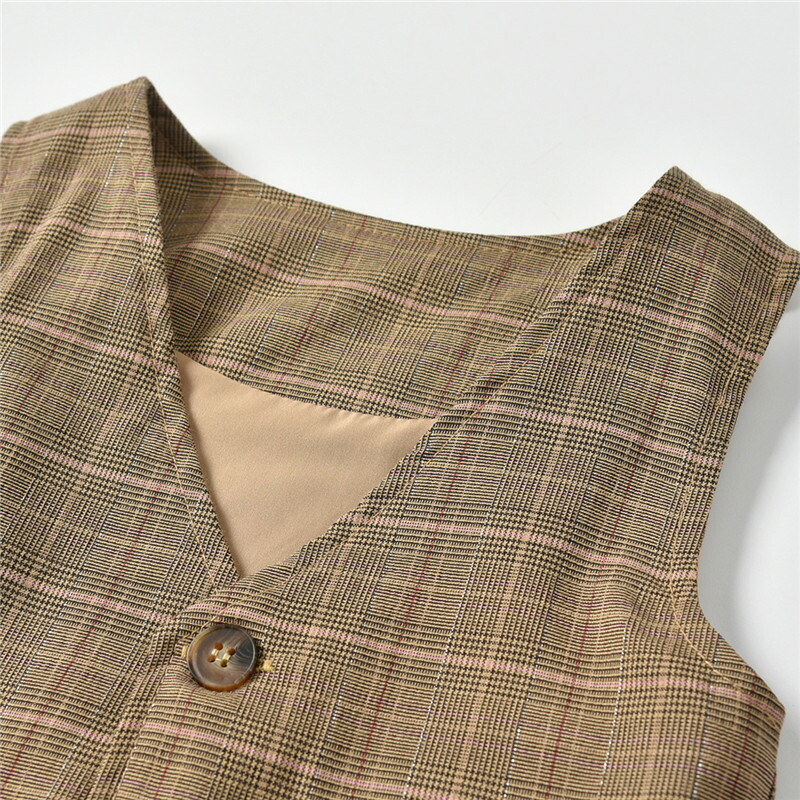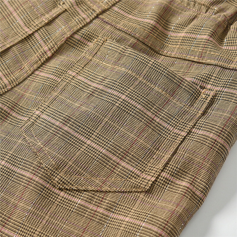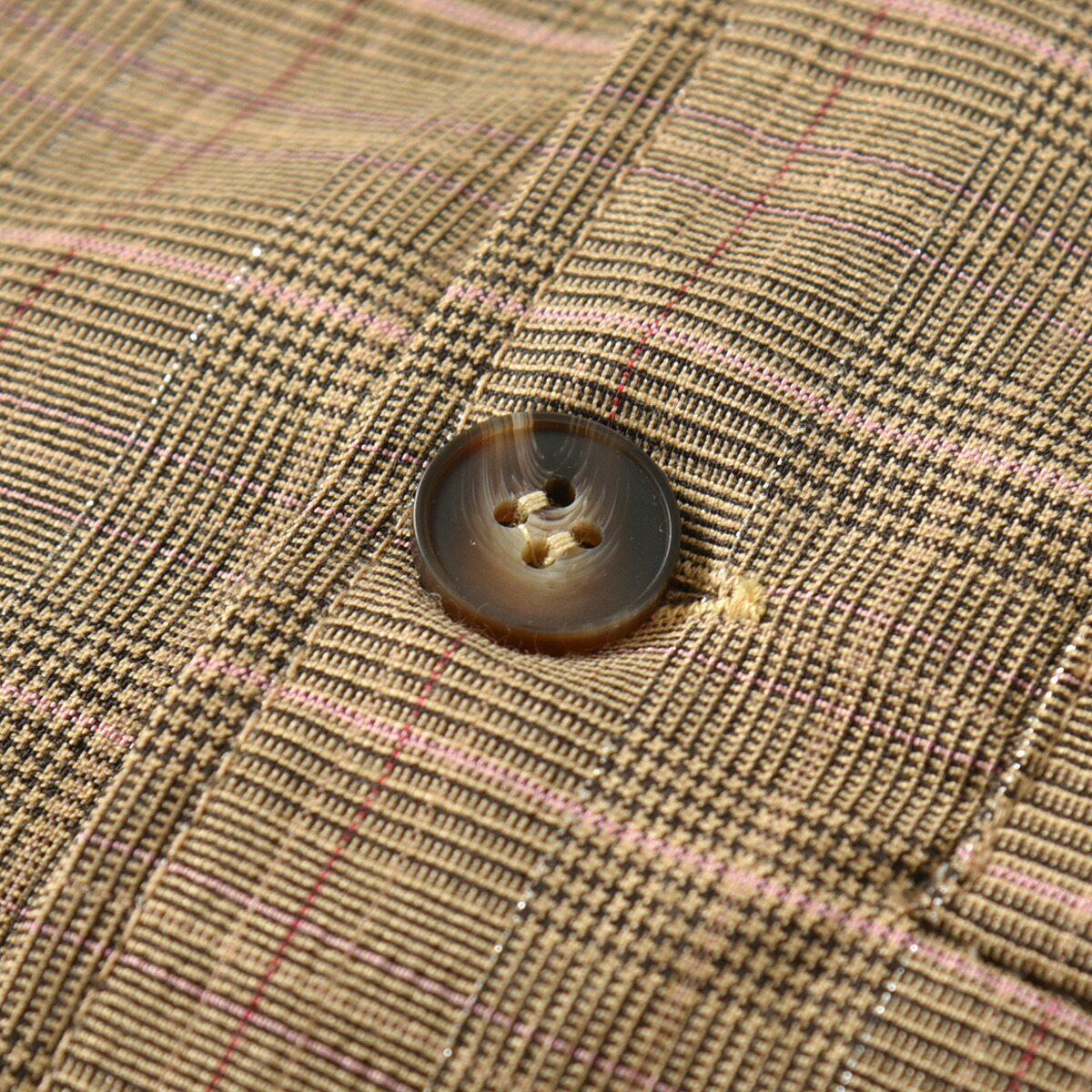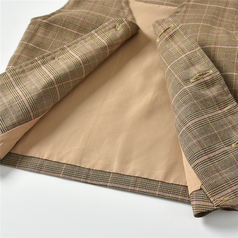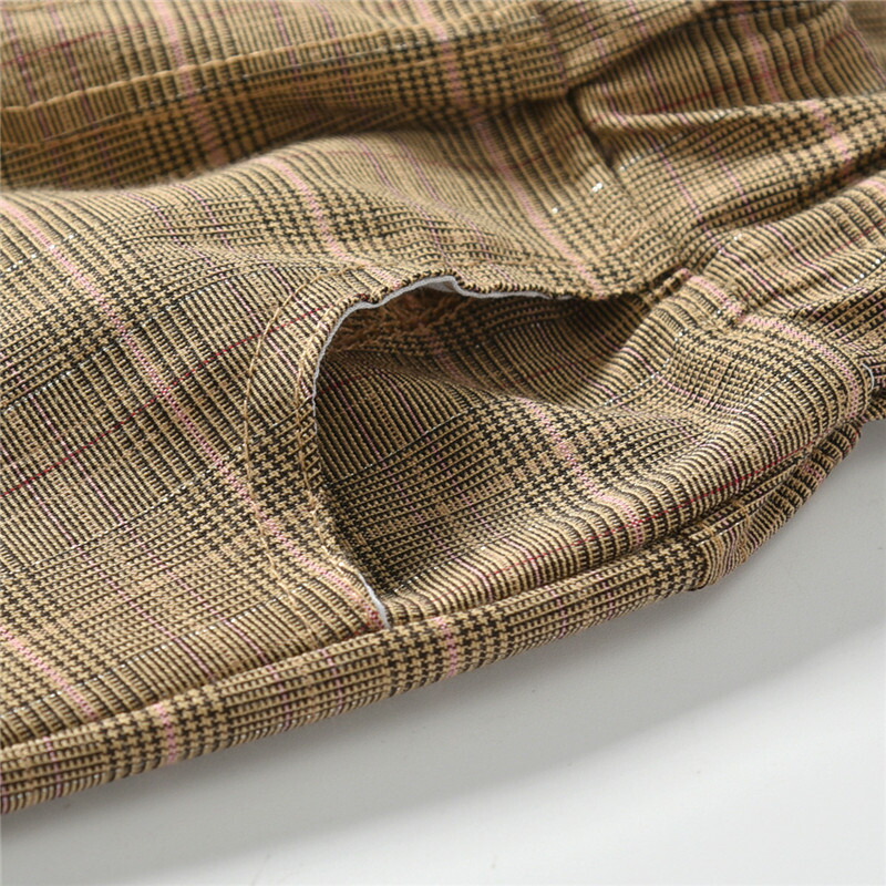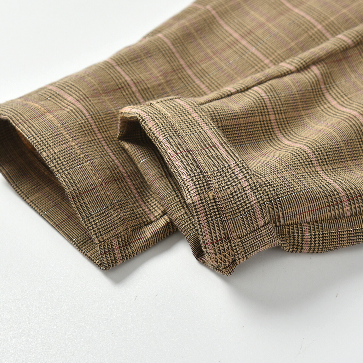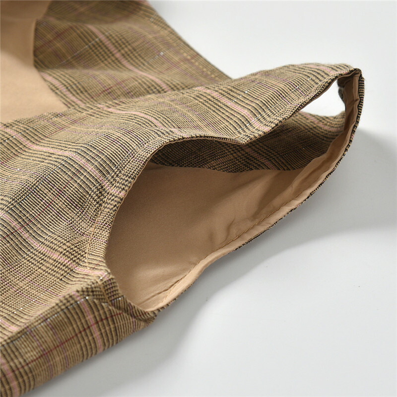 ボリュームを持たせているので、甘くなりすぎずスタイル良く見せてくれる。写真では無地のように見えるが、実物をよく見るとチェック柄が見える。