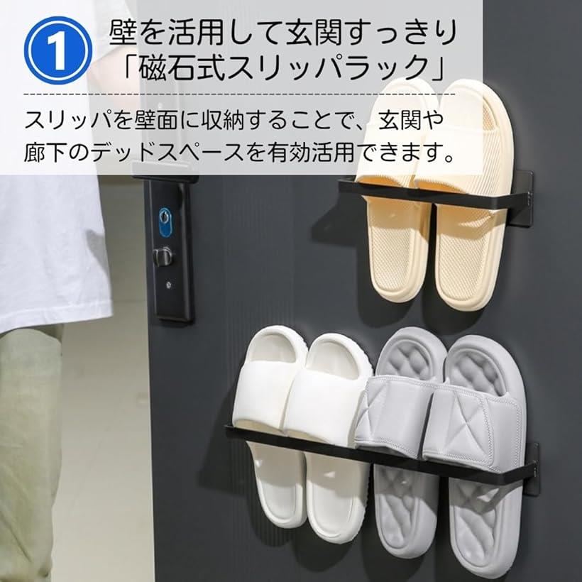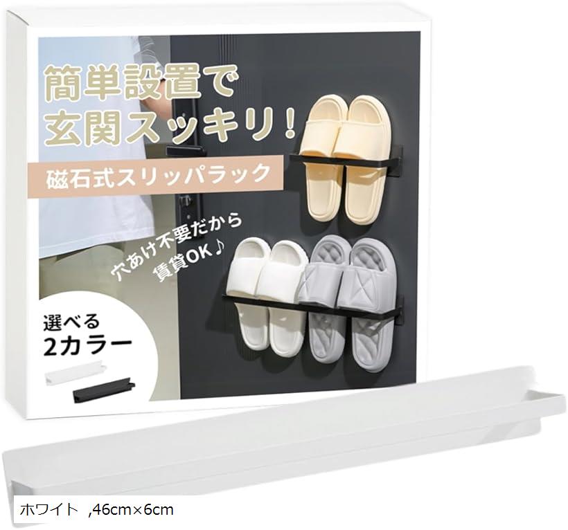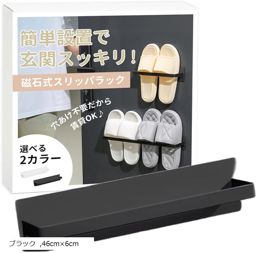 スリッパラック マグネット 壁掛け 収 ブラック ホワイト 25cmx6cm 46cmx6cm