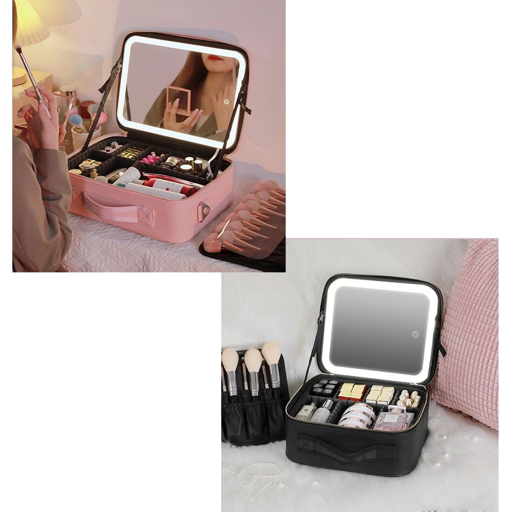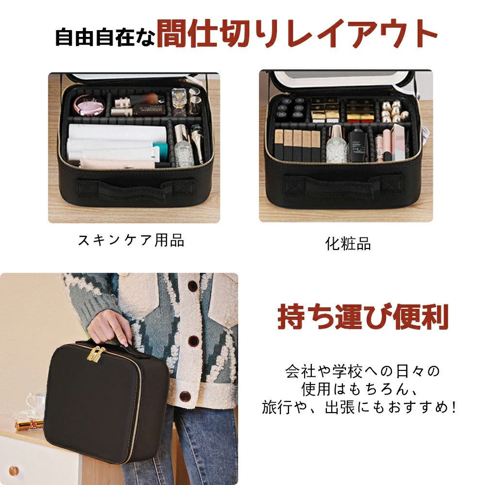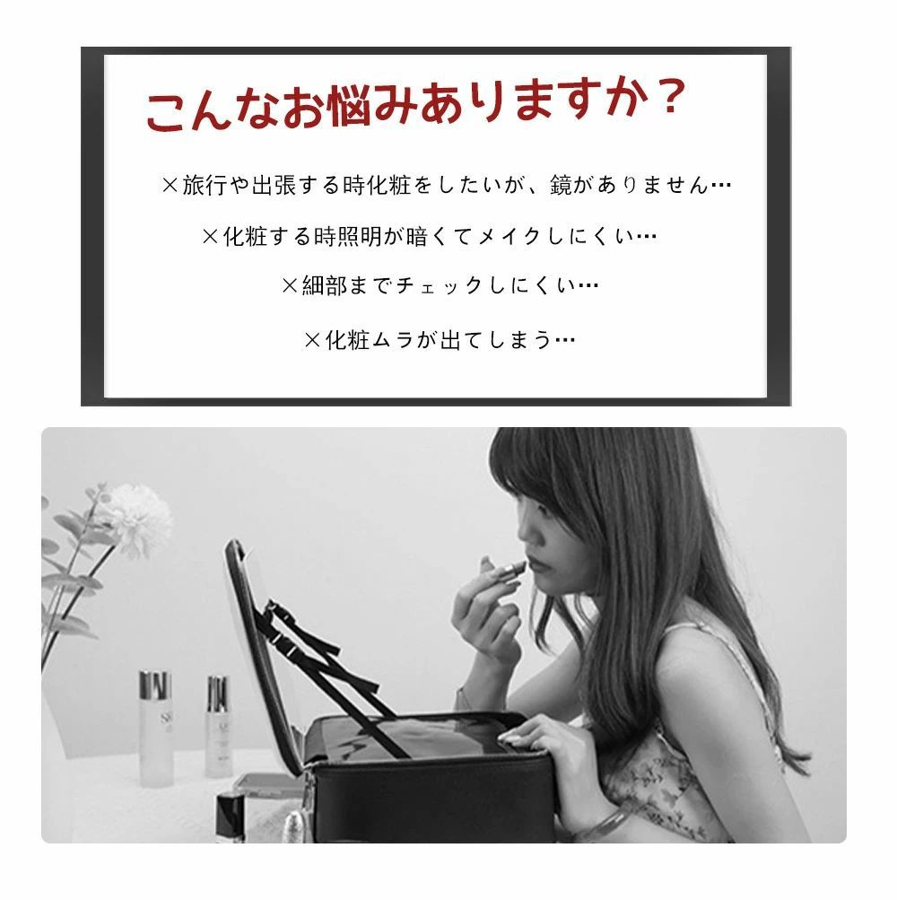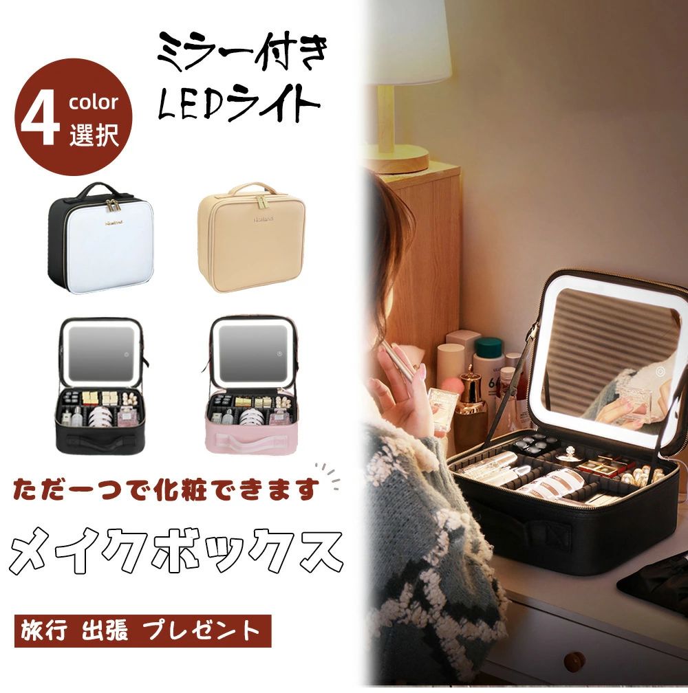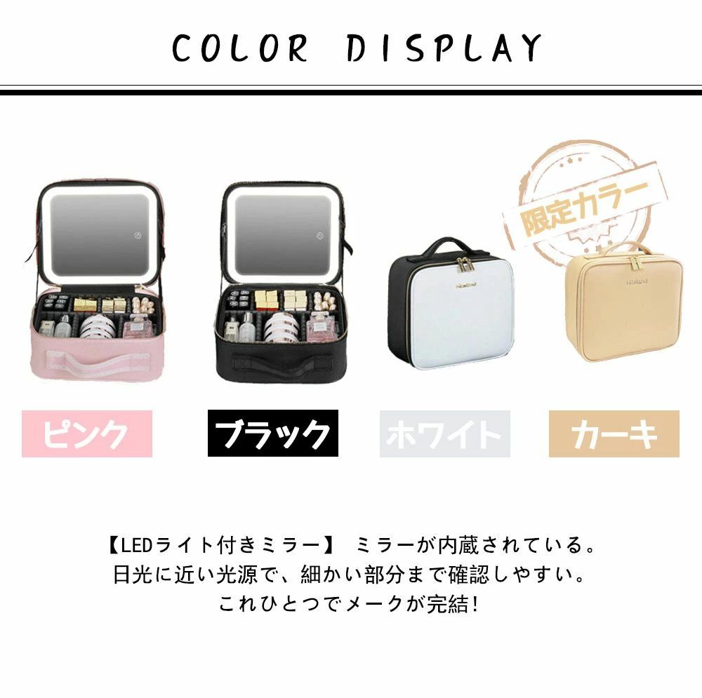 化粧ボックス ミラー付き 化粧箱 大容 ブラック ピンク ホワイト カーキ