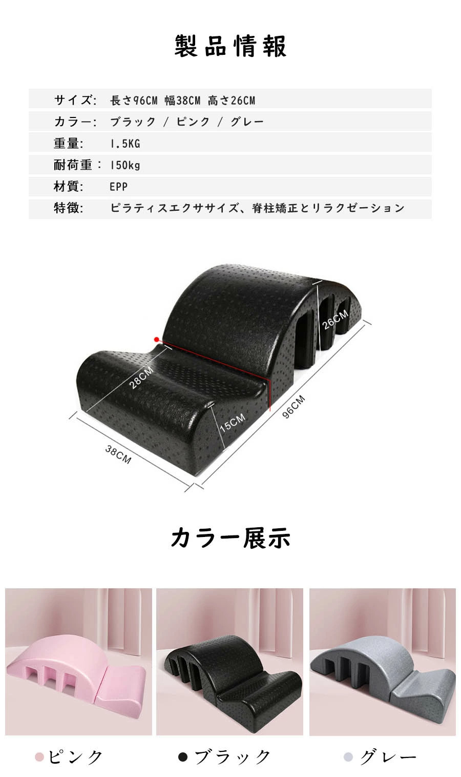 背中 ストレッチ 背骨 背筋 腰 骨盤 ブラック グレー ピンク