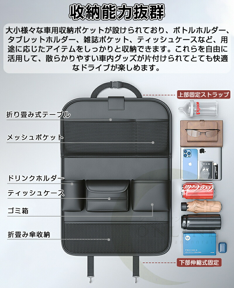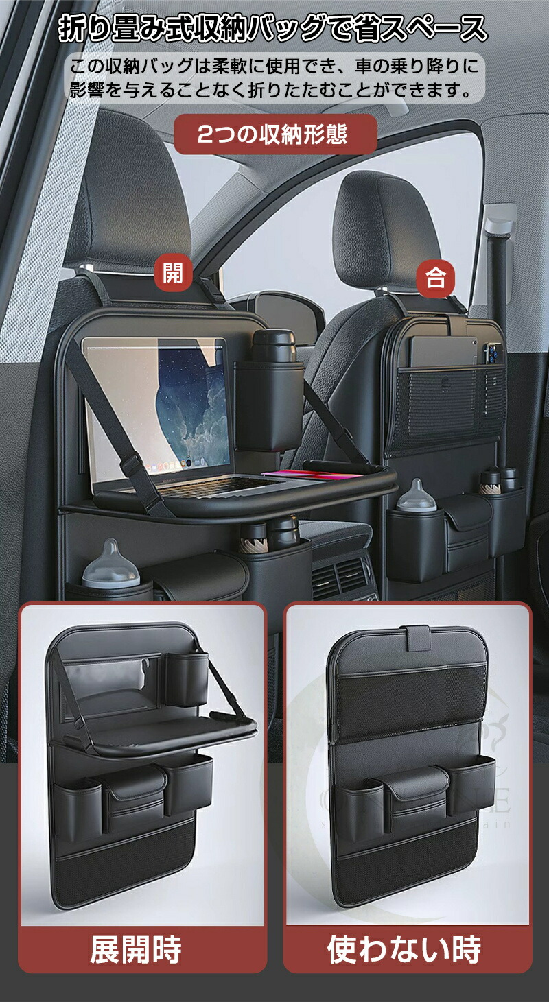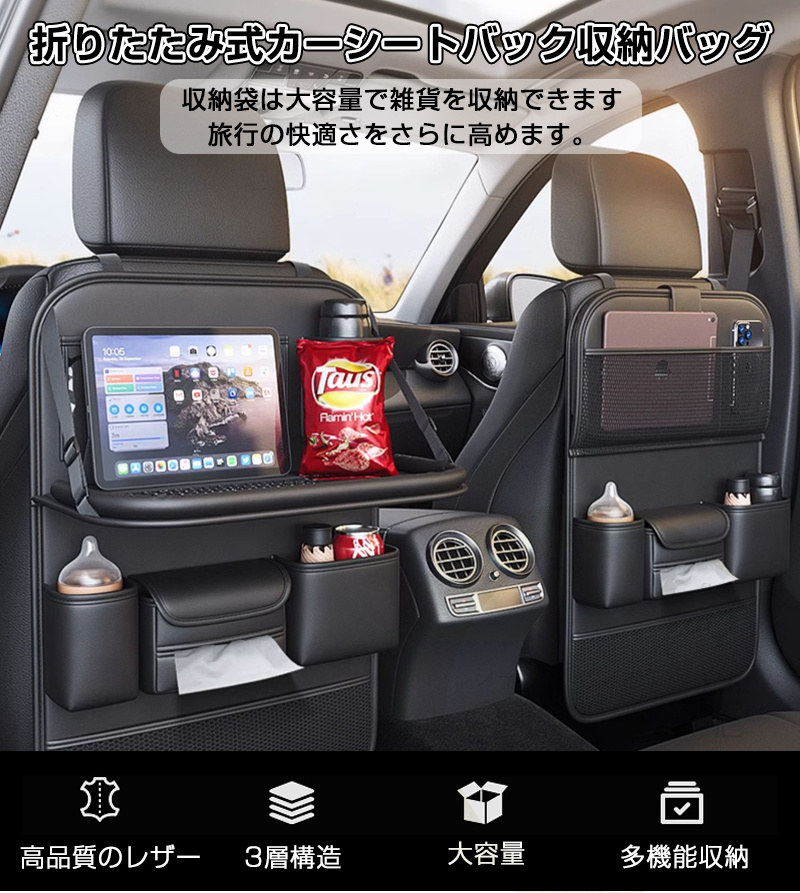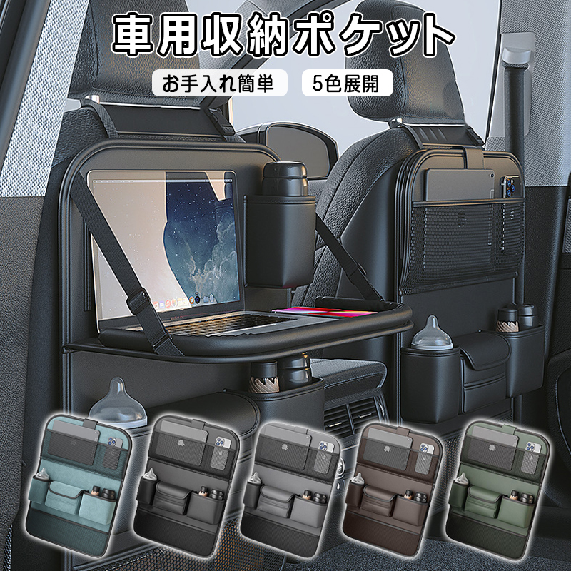 テーブル付き 車用収納ポケット 多機能 グレー ブラック グリーン ブラウン ブラック スエード ブラウン スエード さわやかブルー スエード グレー スエード