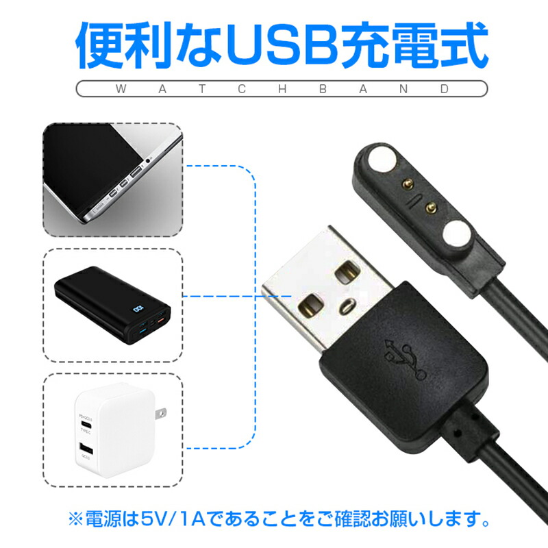 スマートウォッチ 充電器 スマートウォ F57L F57pro F21pro F15pro F15S F97S F57 F22R F107 F207 F207R 5.0mmブラック 8.5mmホワイト