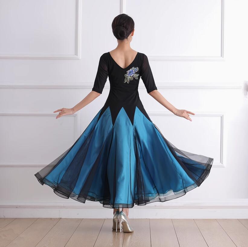 ロング丈ワンピース 社交ダンス衣装 ステージ衣装 社交ダンスドレス モダンドレス 社交ダンス ダンスウェア スレンダー モダン衣装 フラメンコ パーティー 大きい裾 スタンダードドレス ワ レディース