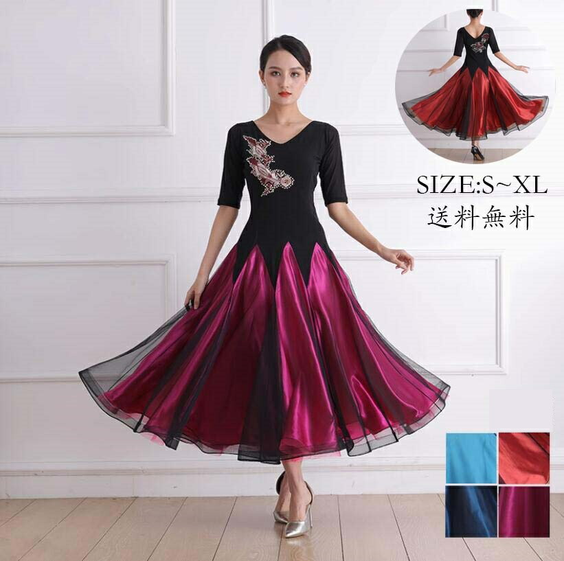 ロング丈ワンピース 社交ダンス衣装 ス 体操 ダンス フラメンコ ワンピース ドレス 早い者勝ち A B C D S M L XL