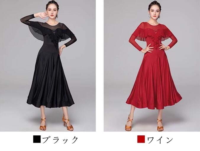 社交ダンス衣装 ドレス 高級感 社交ダ 体操 ダンス 社交ダンス ウェア 特集 ワイン ブラック M L XL XXL