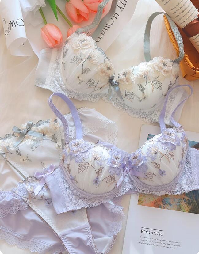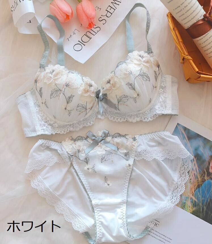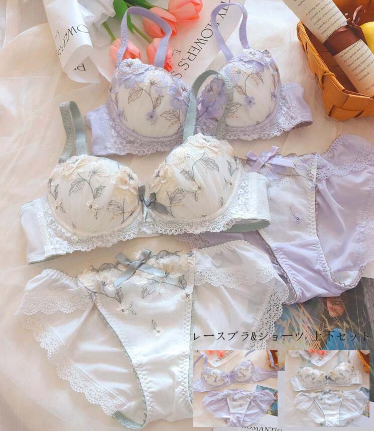 2点セット レースブラセット ショーツ レディース インナー 下着 ブラジャー 人気 ホワイト パープル 70B 70C 70D 75B 75C 75D 75E 80B 80C 80D 85B 85C 85D