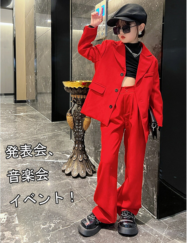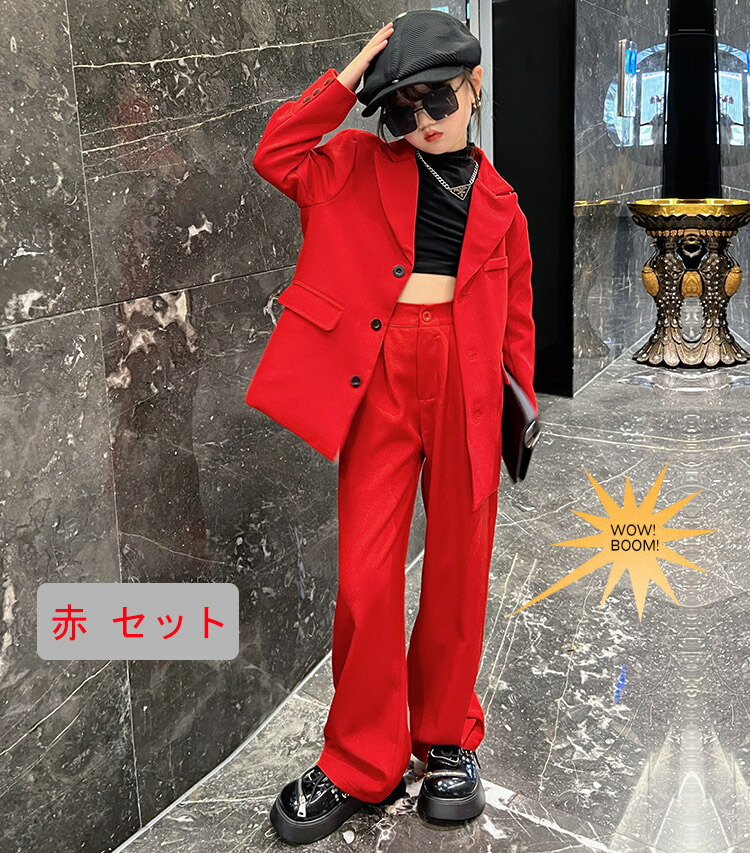 ダンス衣装 スーツ 赤 セットアップ 体操 ダンス 社交ダンス ウェア 通販 120cm 130cm 140cm 150cm 160cm 170cm