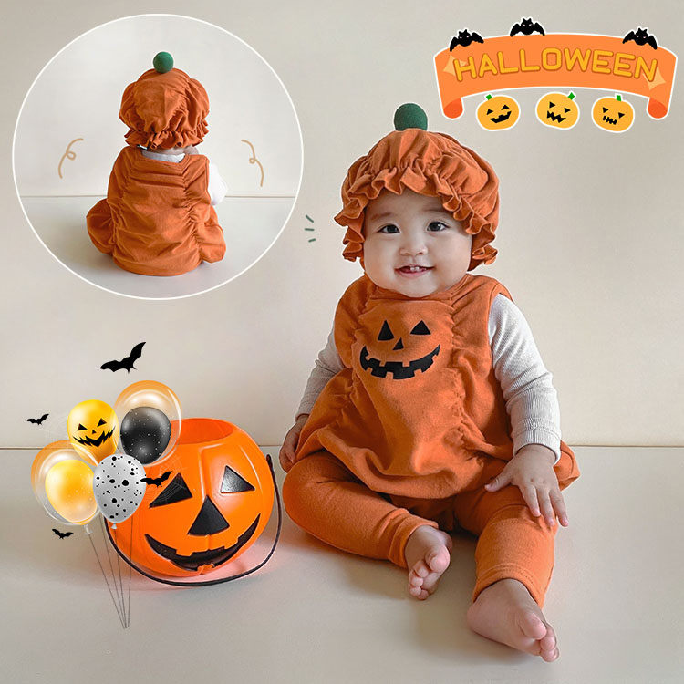 ハロウィン ベビー カボチャ衣装 ロンパース コスプレ 仮装 可愛い ベスト カボチャ柄 オレンジ ベビー服 2歳 キッズ コスチュー 1歳