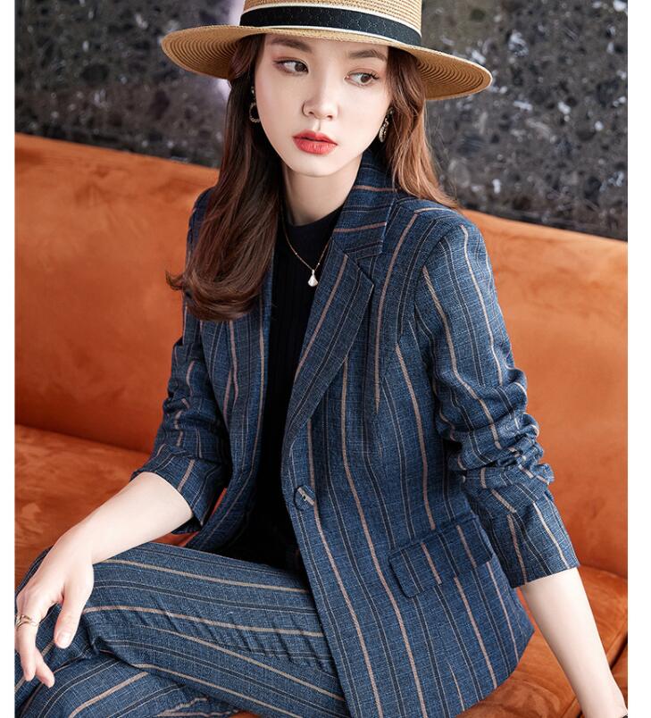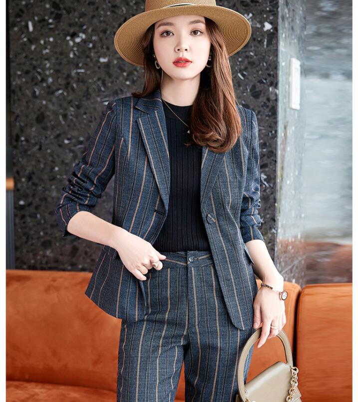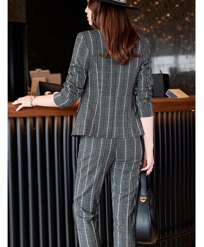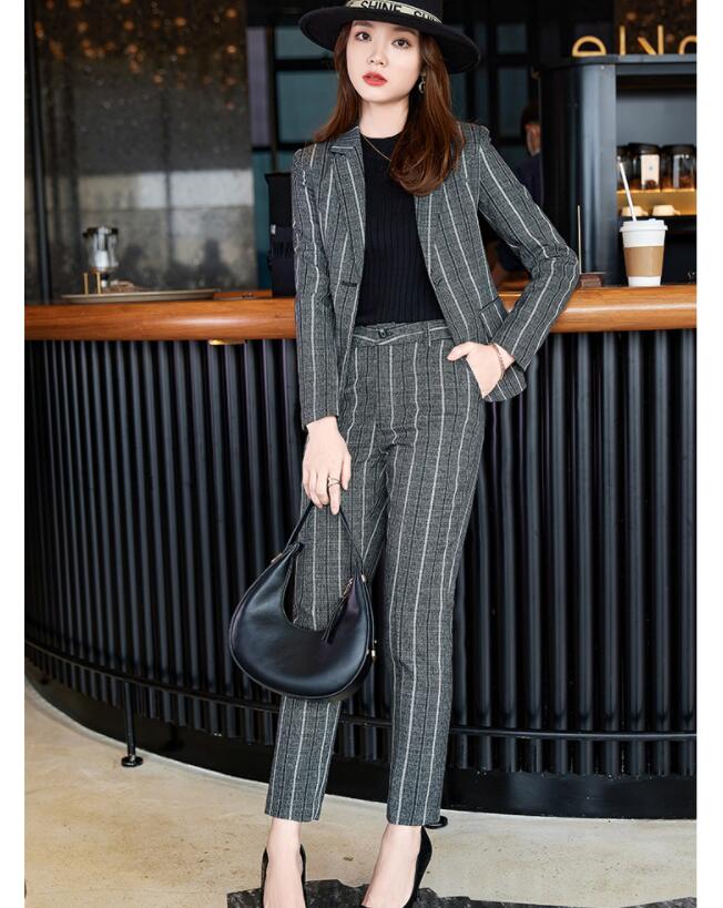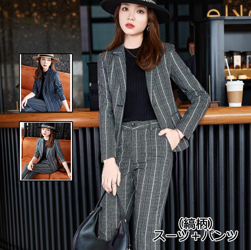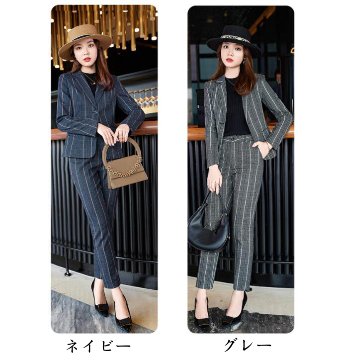 ストライプスーツ2点セット 縞柄 レデ スーツ セットアップ パンツスーツ 人気 グレー ネイビー S M L XL 2XL 3XL 4XL