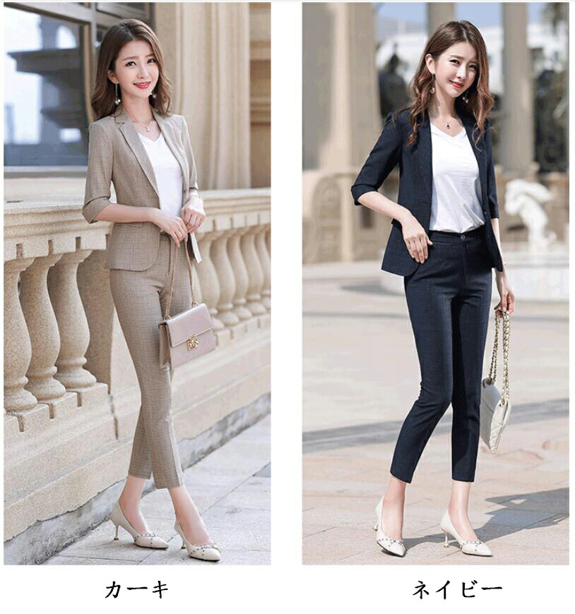 春夏秋 新着 細身タイプ ビジネススー レディースファッション 特集 カーキ(ジャケット+パンツ) ネイビー(ジャケット+パンツ) S M L XL 2XL 3XL 4XL