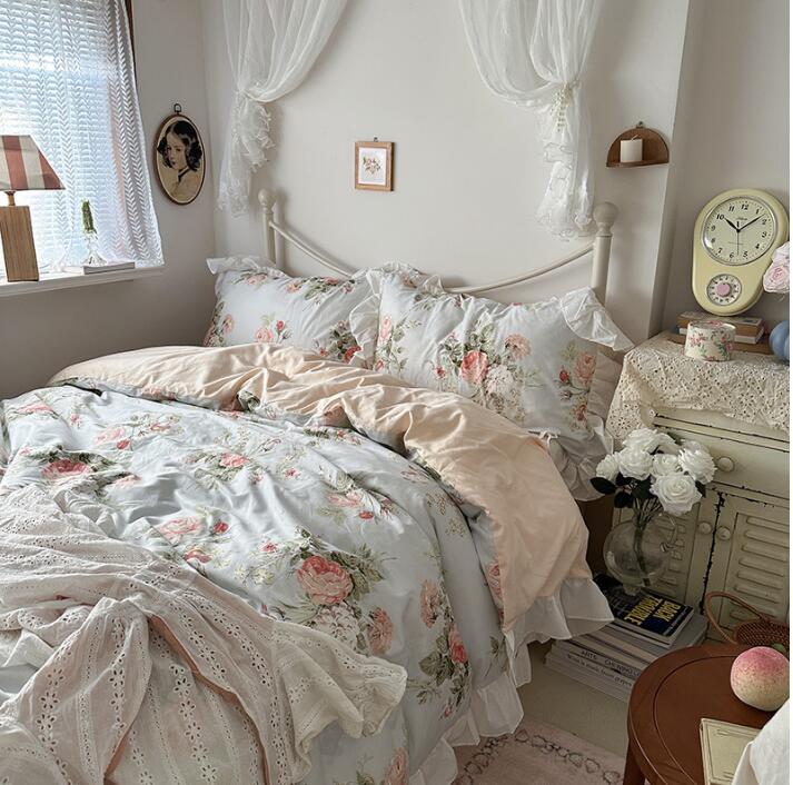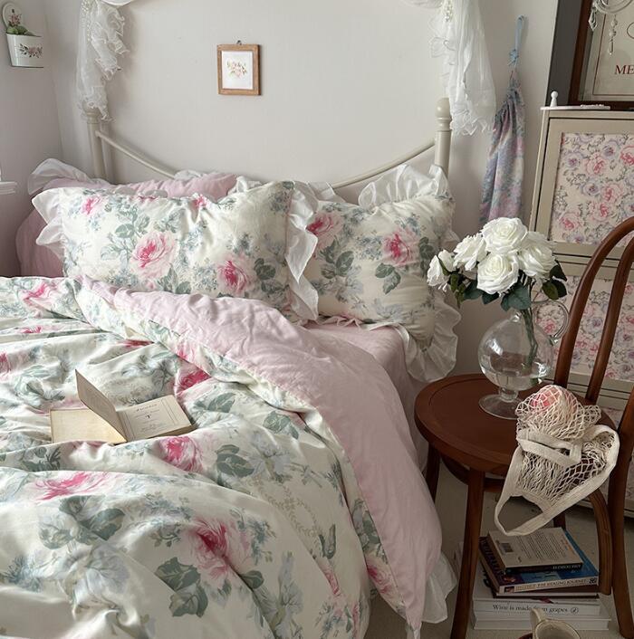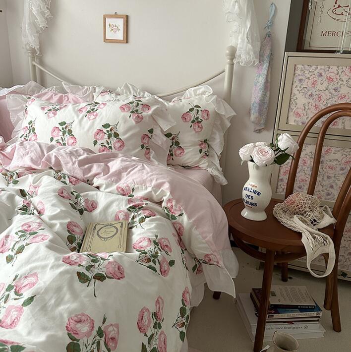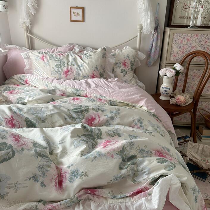 布団カバーセット 可愛い花柄 薔薇 フ インテリア 寝具 収納 通販 シングル(3点セット) フラットシーツタイプ1.5m フラットシーツタイプ2.0m ボックスシーツタイプ1.5m ボックスシーツタイプ1.8m A B C