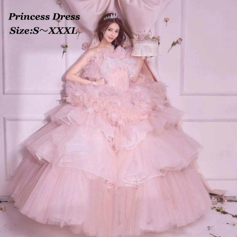 ウェディングドレス お姫様 ピンク 結 レディースファッション 新作 S M L XL XXL XXXL