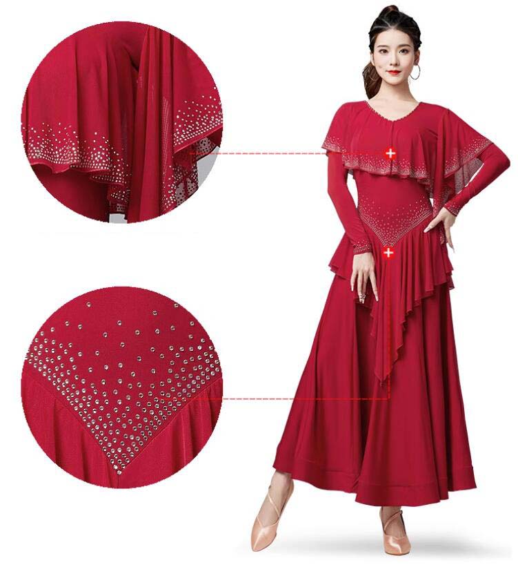 社交ダンスドレス キラキラ ゴージャス 体操 ダンス 社交ダンス ウェア 通販 M L XL XXL ワインレッド ネイビー