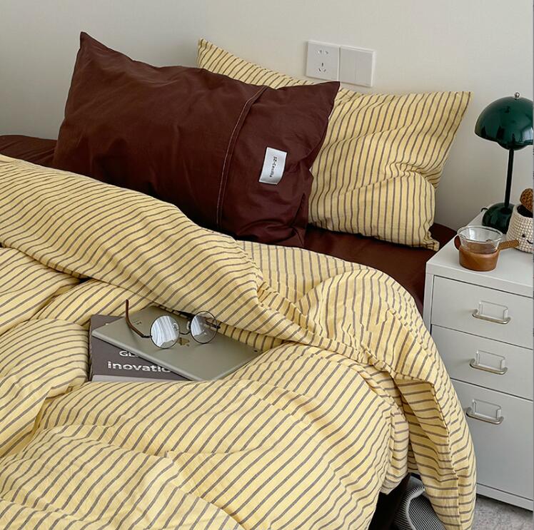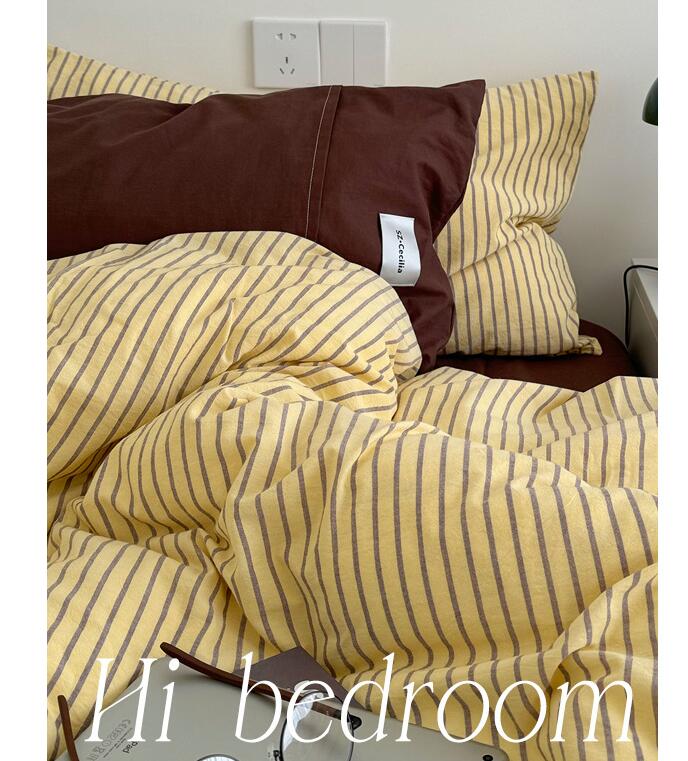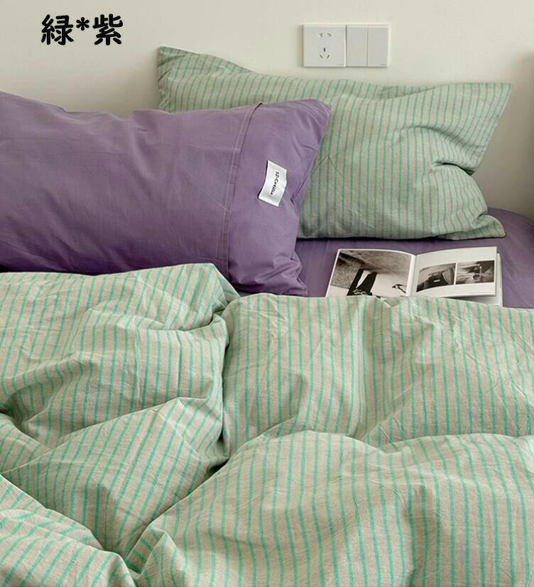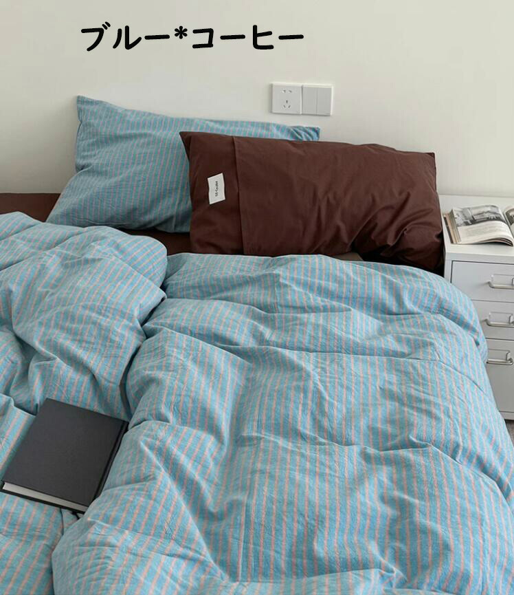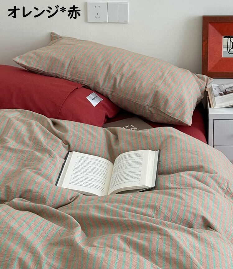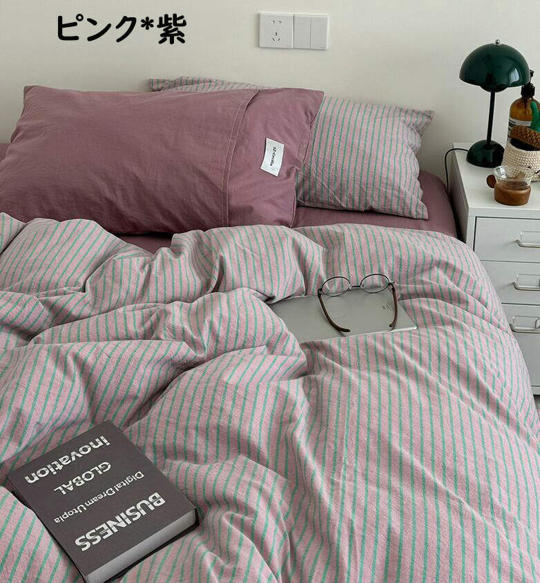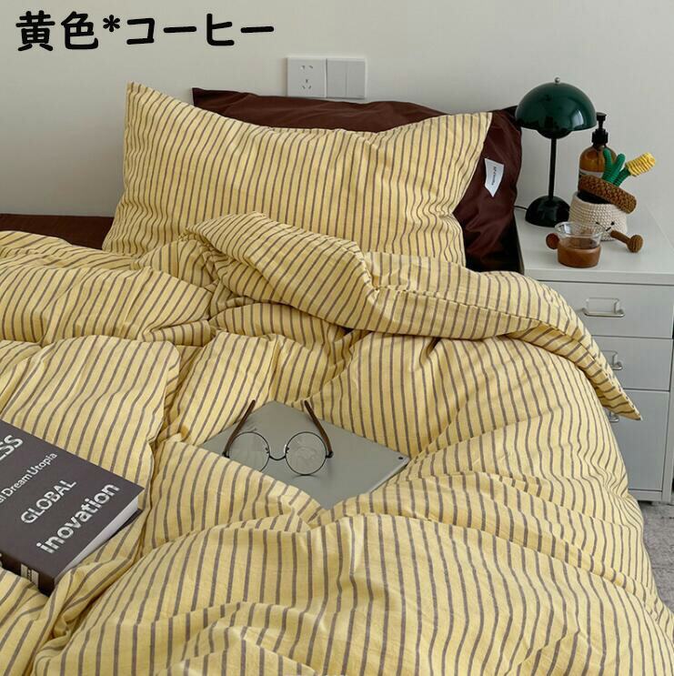 布団カバーセット ストライプ柄 ins 寝具 寝具カバー シーツ 寝具カバーセット 人気 シングル(3点セット) フラットシーツタイプ1.5m フラットシーツタイプ2.0m ボックスシーツタイプ1.5m ボックスシーツタイプ1.8m 黄色*コーヒー ピンク*紫 オレンジ*赤 ブルー*コーヒー 緑*紫