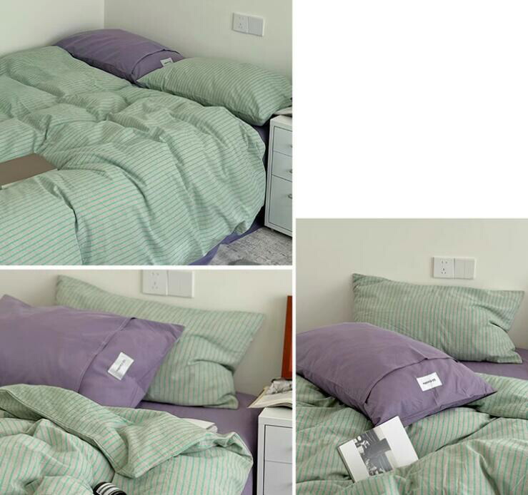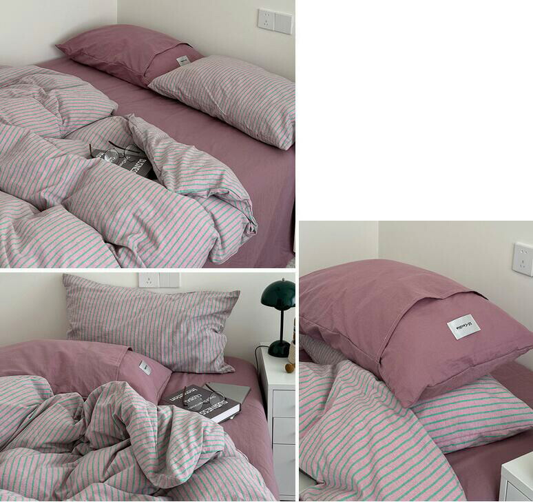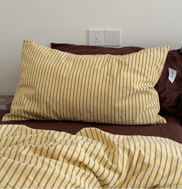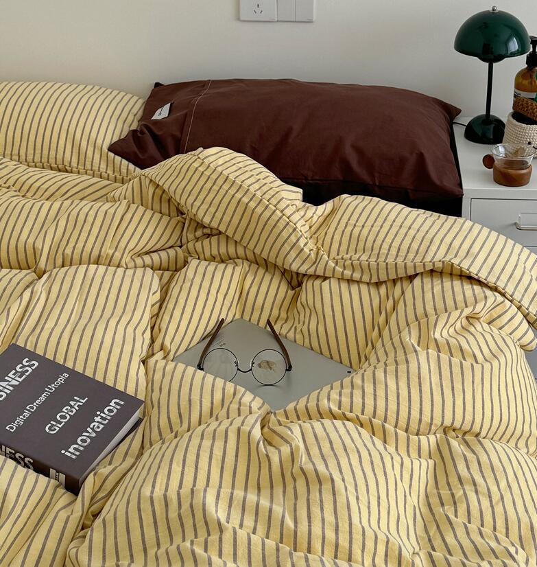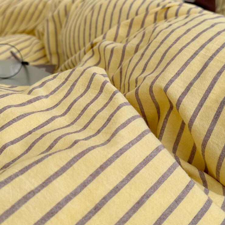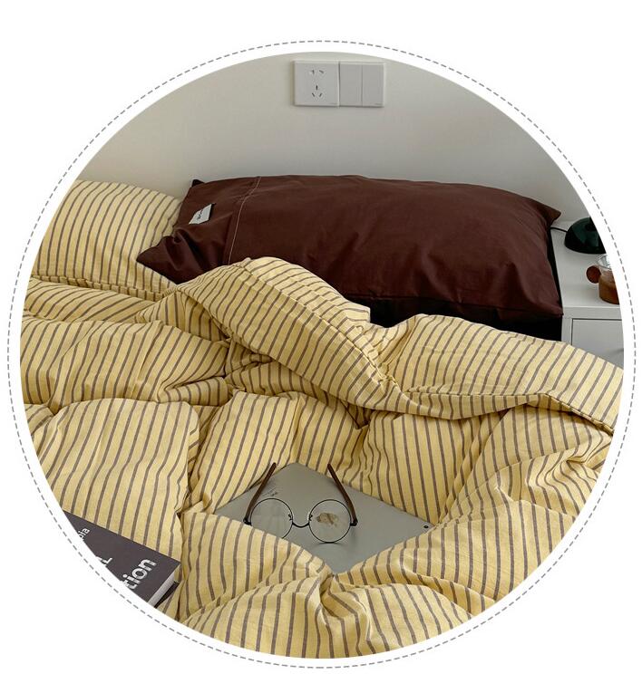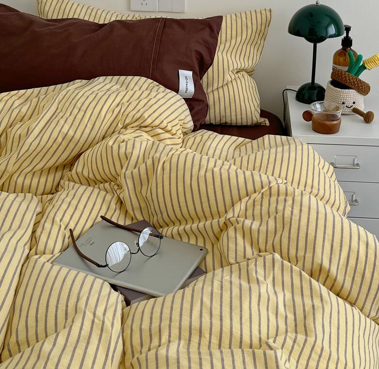 布団カバーセット ストライプ柄 ins 寝具 寝具カバー シーツ 寝具カバーセット 人気 シングル(3点セット) フラットシーツタイプ1.5m フラットシーツタイプ2.0m ボックスシーツタイプ1.5m ボックスシーツタイプ1.8m 黄色*コーヒー ピンク*紫 オレンジ*赤 ブルー*コーヒー 緑*紫