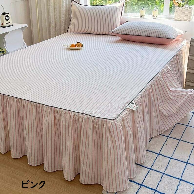 ベッドスカート 枕カバー コットン 綿 インテリア 寝具 収納 人気 1点ベッドスカート120x200cm 1点ベッドスカート150x200cm 1点ベッドスカート180*200cm 1点ベッドスカート200x220cm サイズ01(3点セット) サイズ02(3点セット) サイズ03(3点セット) サイズ04(3点セット) グリーン ブルー ピンク パープル