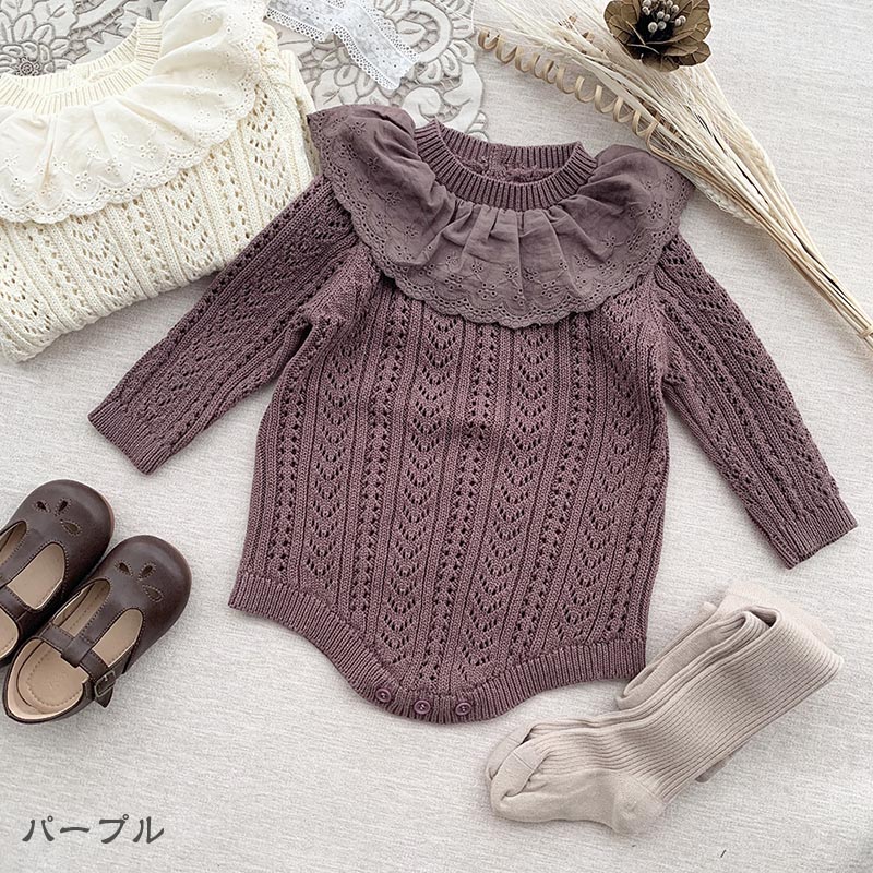 ベビー ロンパース 女の子 カバーオー キッズ ベビー マタニティ 通販 ホワイト パープル 66cm 73CM 80cm 90cm
