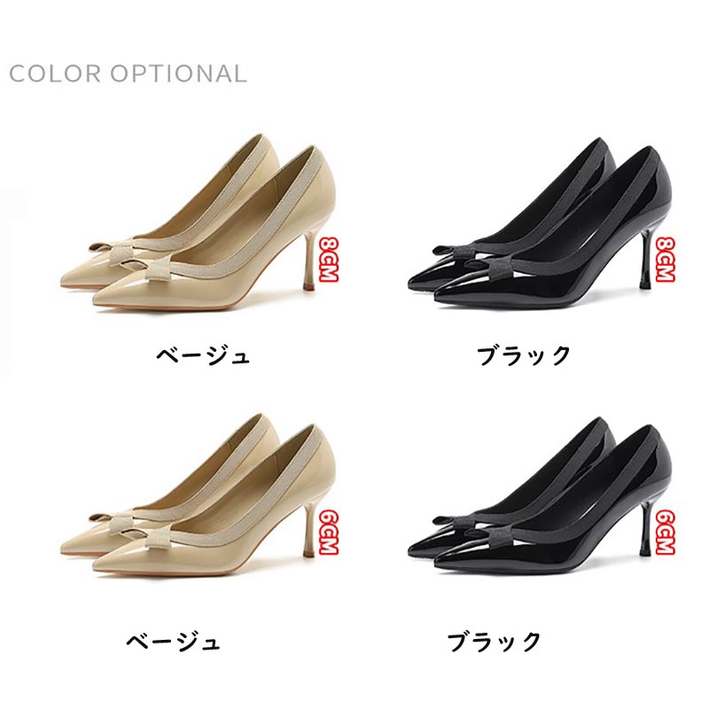 ハイヒール パンプス ピンヒール リボ 靴 早い者勝ち ブラック6cm ベージュ6cm ブラック8cm ベージュ8cm 22.0cm 22.5cm 23.0cm 23.5cm 24.0cm 24.5cm 25.0cm