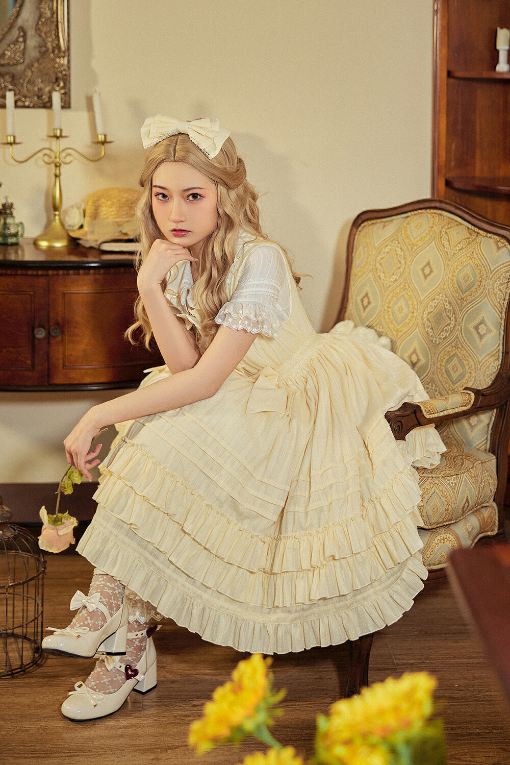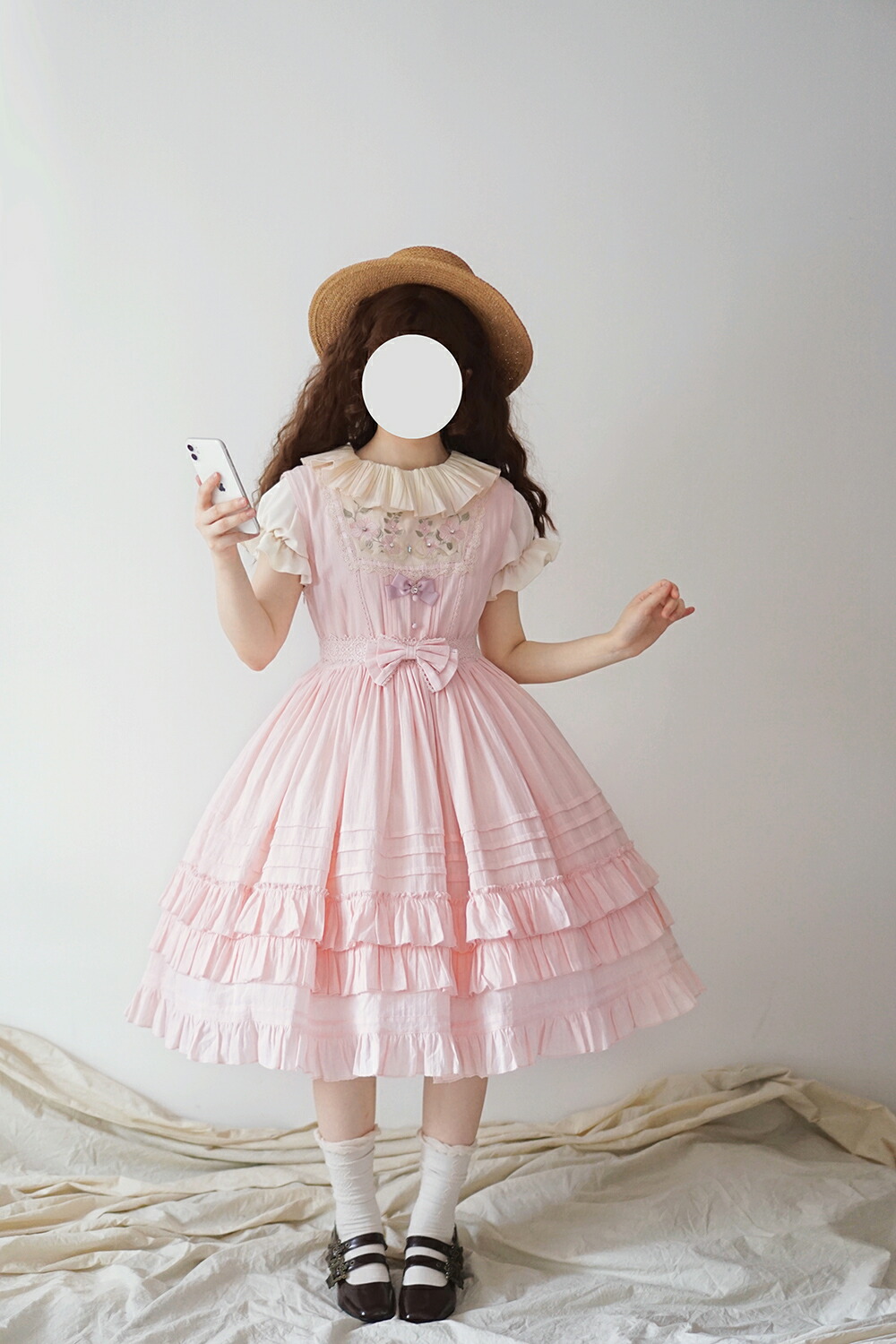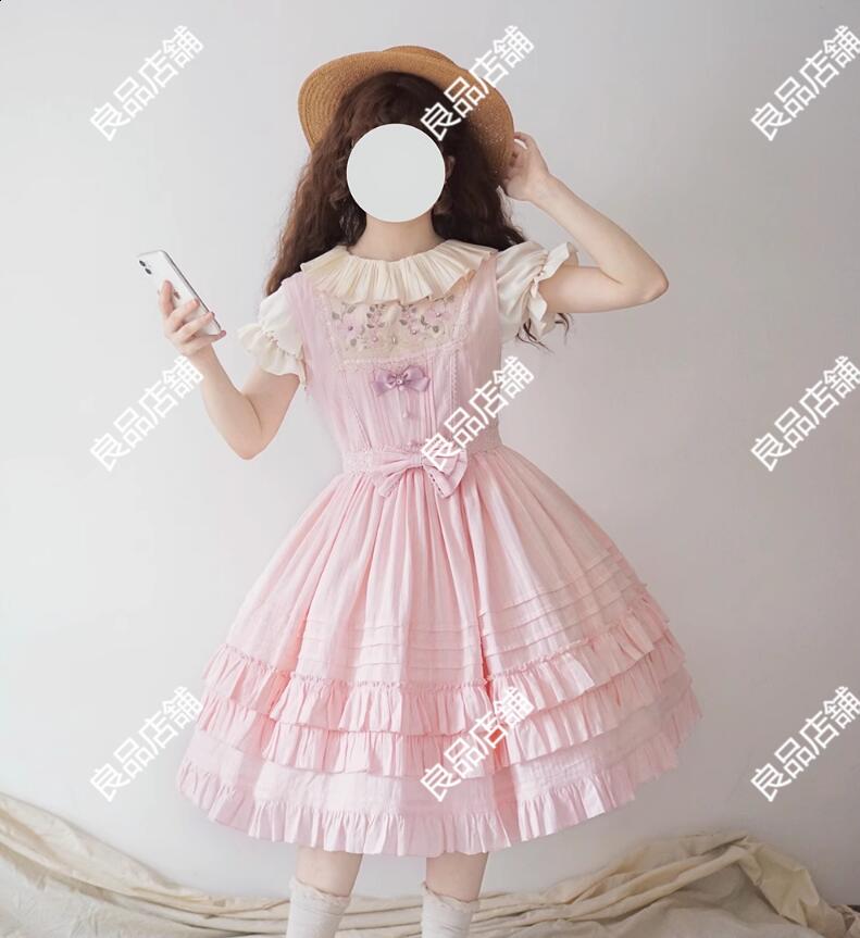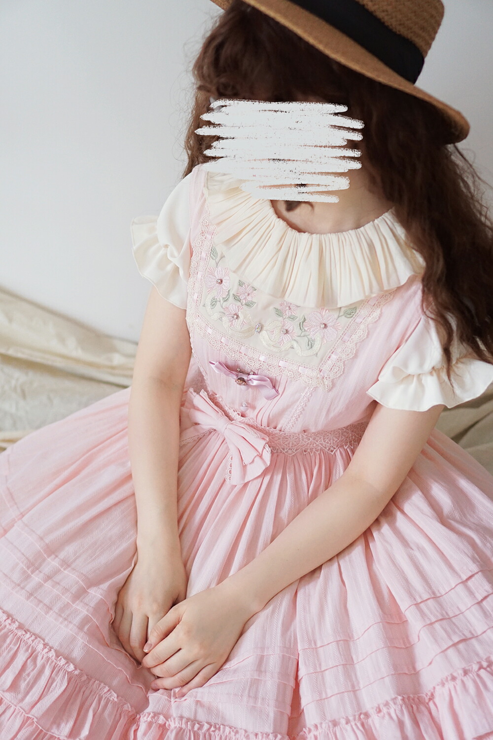 新作 ワンピース ゴスロリ クラロリ 半袖 カチューシャ セット ドレス ロング丈 4色 森ガール ゆめかわいい Lolita ロリィタワンピース クラシカル ロリータ ゴシック 花柄刺繍 レ 甘ロリ