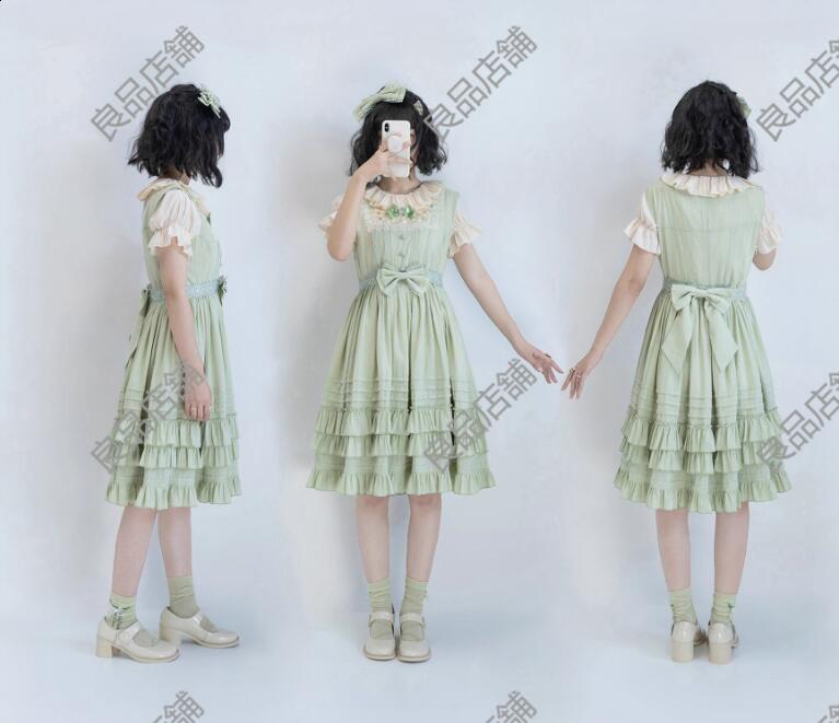 新作 ワンピース ゴスロリ クラロリ ドレス 続々登場 XS S M L XL 2XL グリーン ライトイエロー パープル ピンク