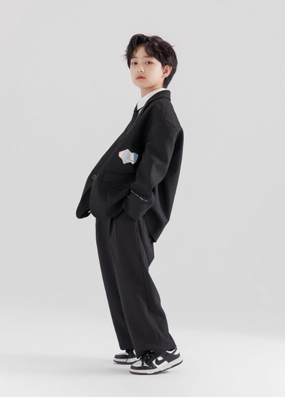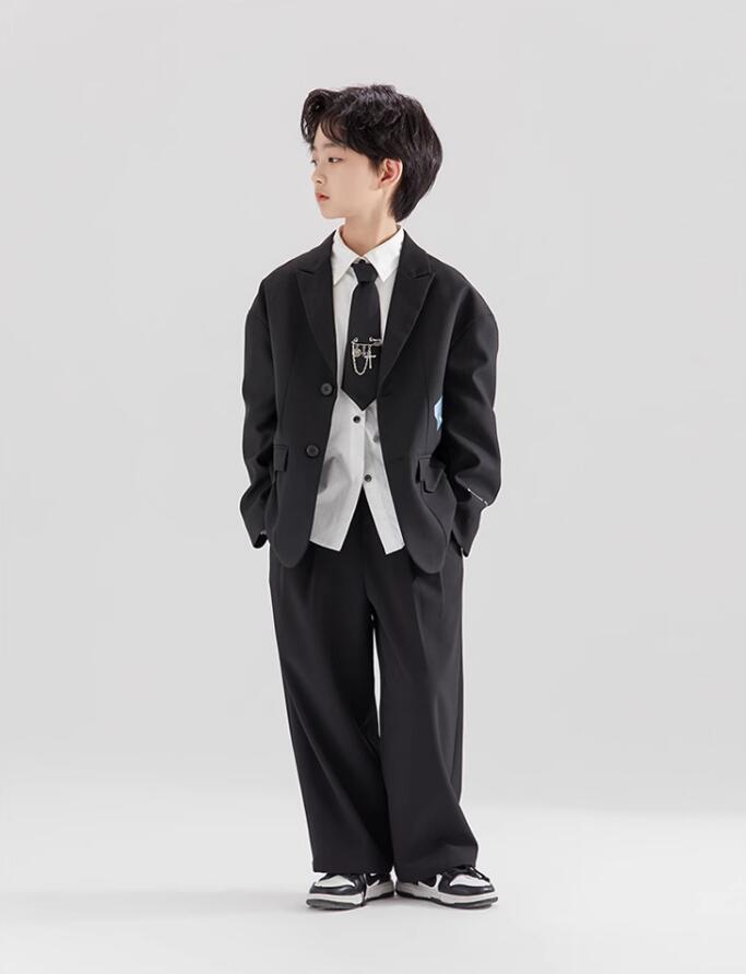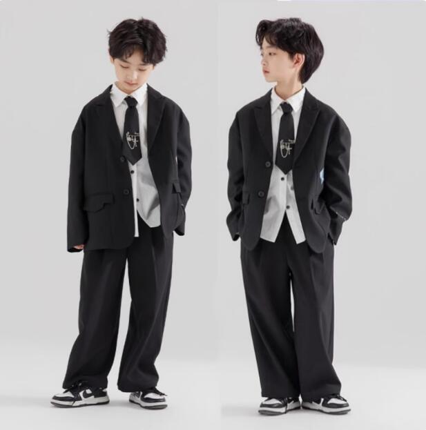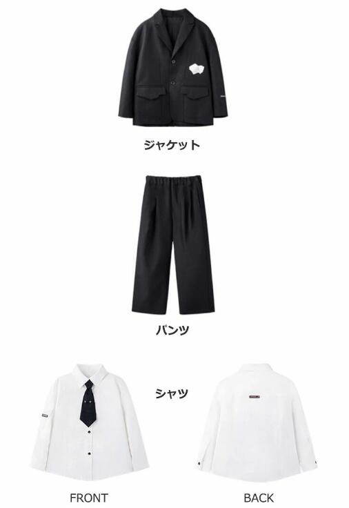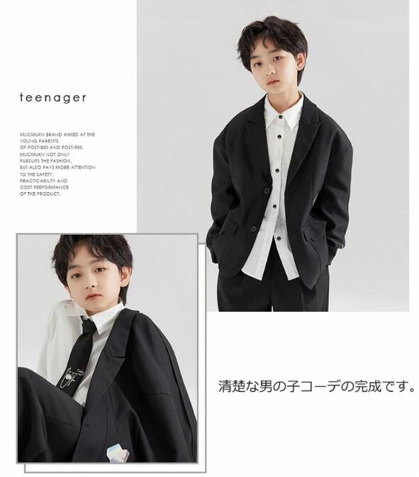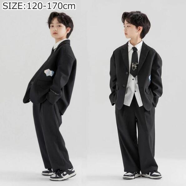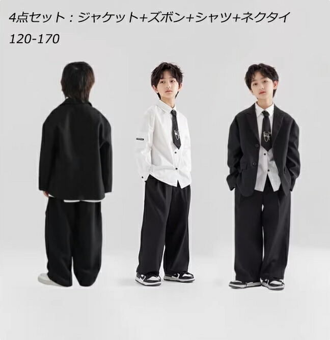 4点セット 入学式 卒業式 スーツ 男の子 セットアップ ブラック ゆったり キッズ ボーイズ ジャケット パンツ ワイシャツ スーツセット フォーマル 大きいサイズ ネクタイ