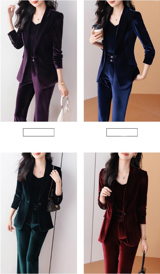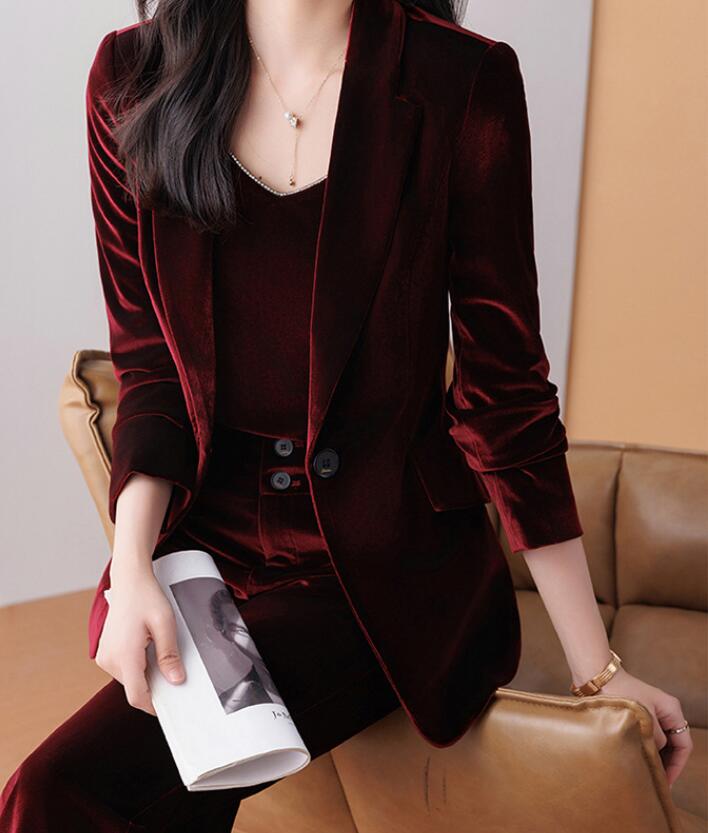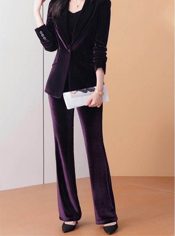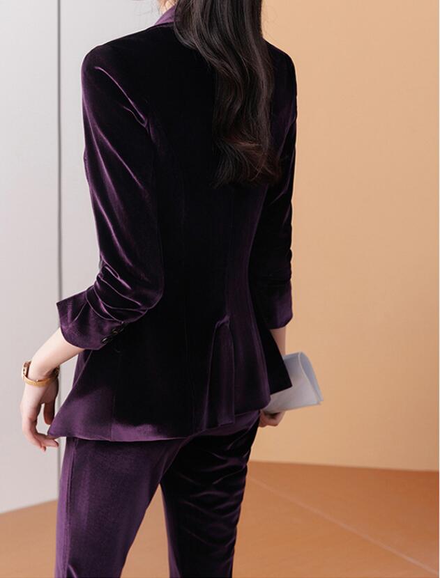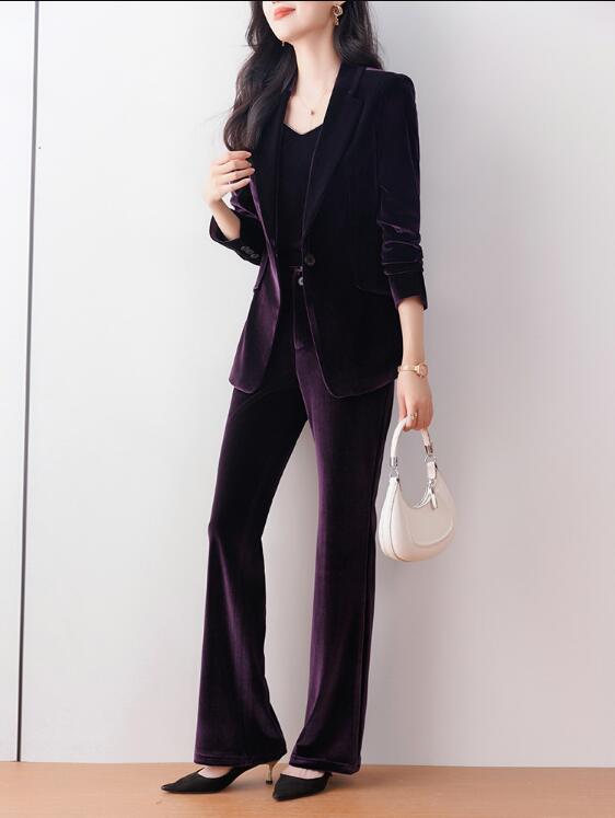 秋冬新発売 無地 ベロア ベルベット 全4色 スーツ パンツスーツ レディース パープル グレー ブラウン セレモニースーツ 入学式 卒業式 高級感 スーツセット OL 2点セット ビジネススー 通勤