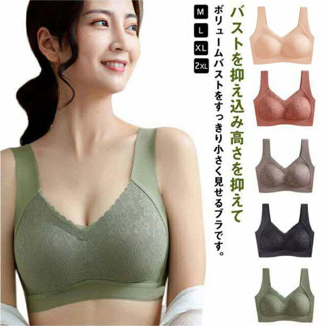 レース レディース 胸を小さく見せるブ インナー 下着 ナイトウエア 通販 肌色 ブラック オレンジ グリーン ミルクティー M L XL 2XL