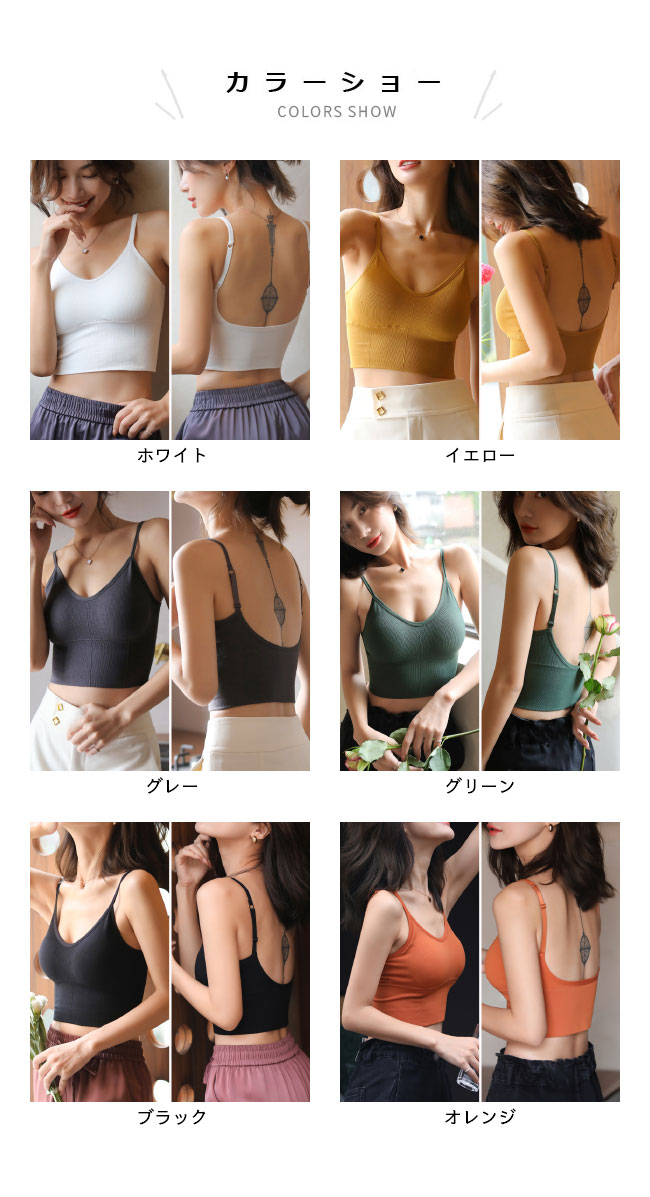 キャミソール カップ付き ブラトップ レディース インナー 下着 ブラトップ 大人気! ホワイト イエロー グレー グリーン ブラック オレンジ