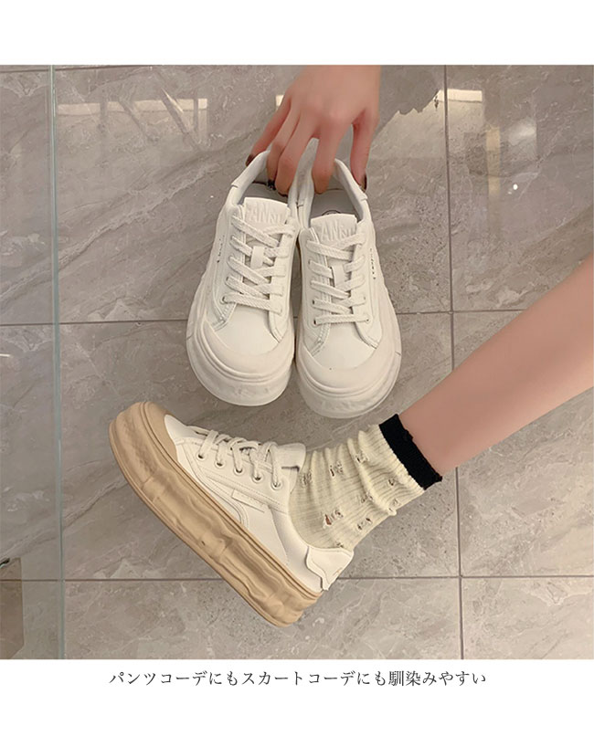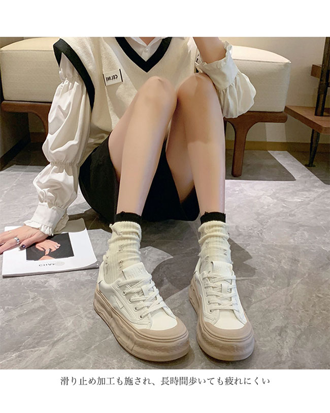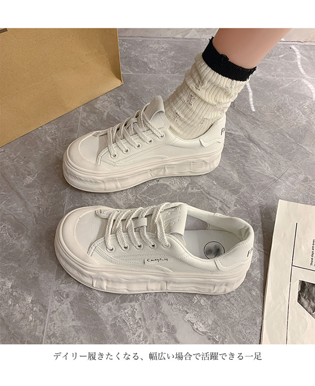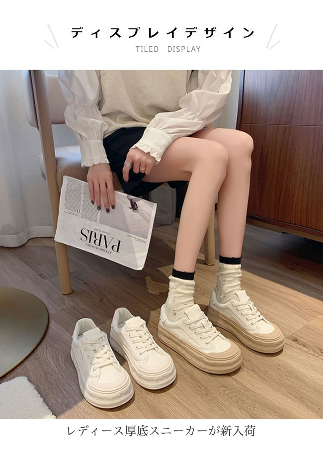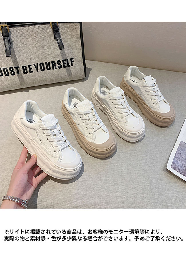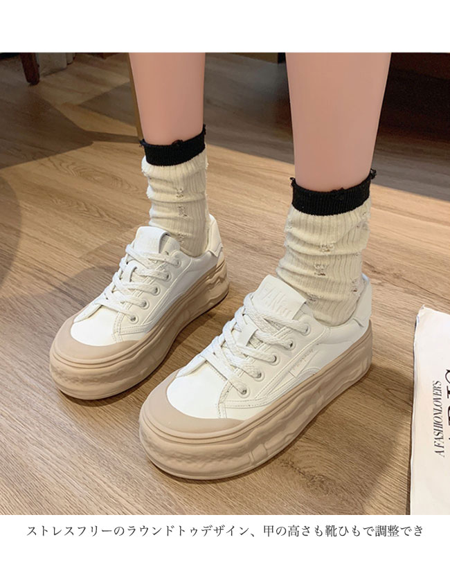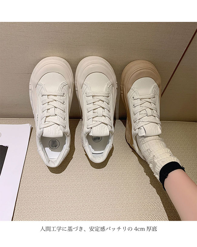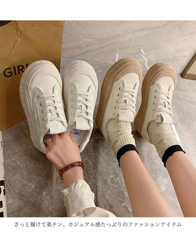 スニーカー レディース 厚底 PUスニ レディース靴 スニーカー 特集 35 36 37 38 39 40 ベージュ オフホワイト