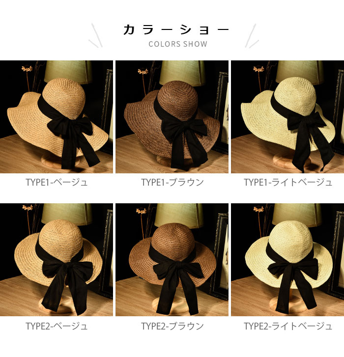 麦わら帽子 レディース つば広 ハット 帽子 レディース帽子 麦わら帽子 早い者勝ち TYPE1-ベージュ TYPE1-ブラウン TYPE1-ライトベージュ TYPE2-ベージュ TYPE2-ブラウン TYPE2-ライトベージュ