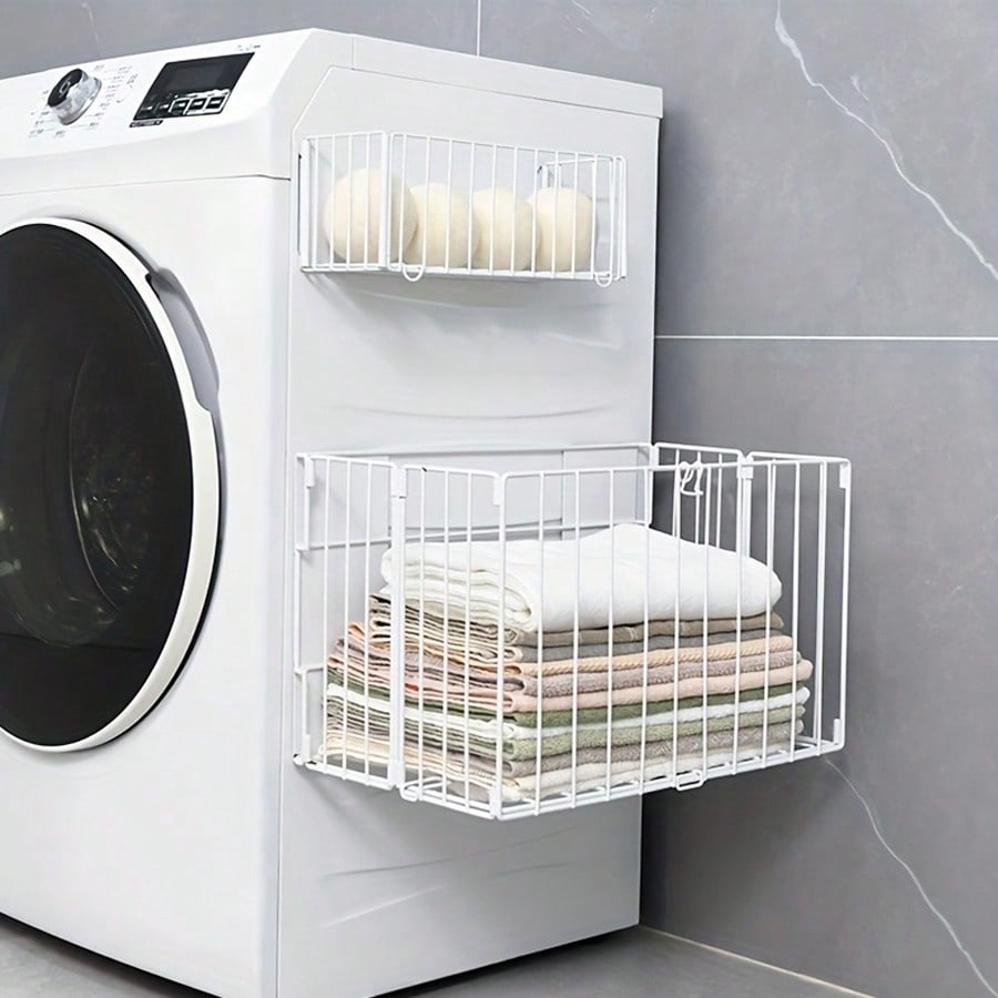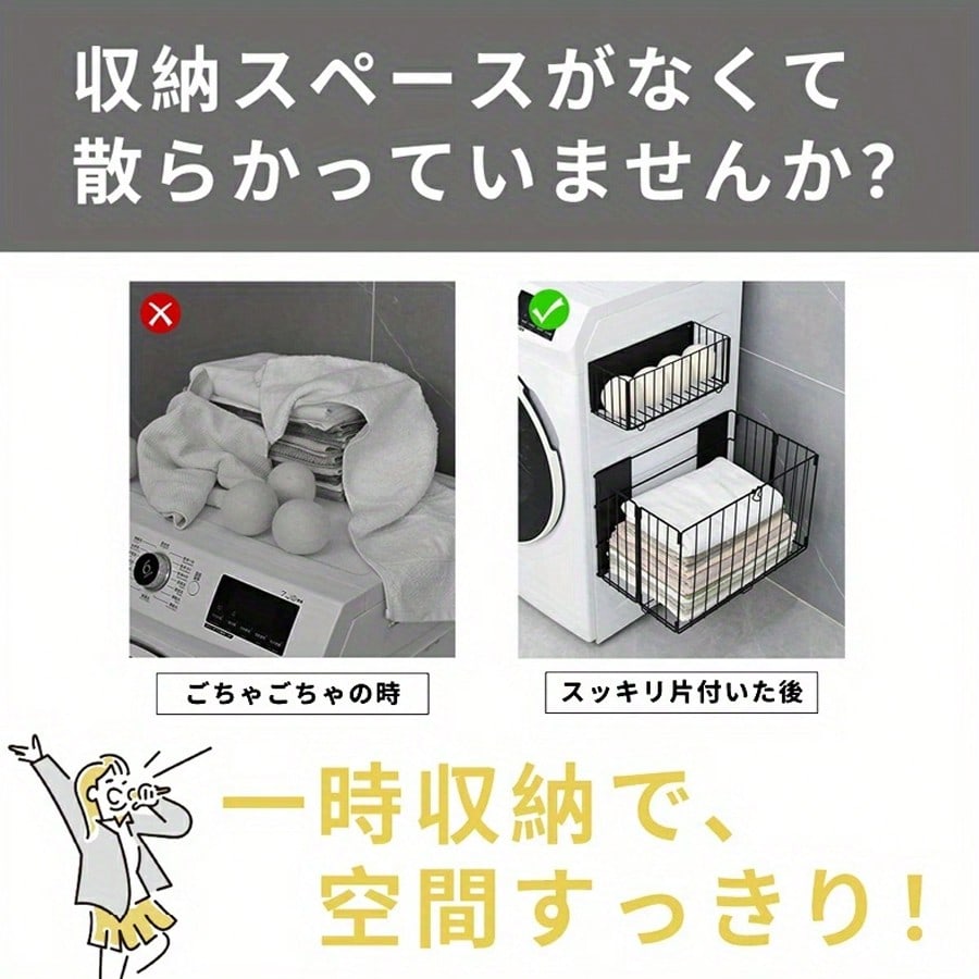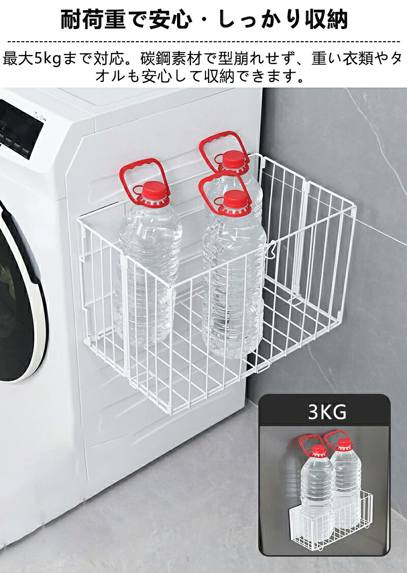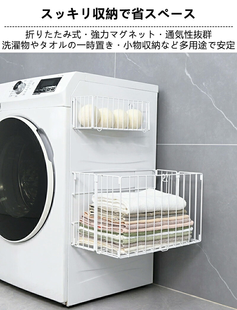 ラック 洗濯機横 折りたたみ式 洗濯かご 浮かせる収納 大容量 磁石 マグネット式 汚れ衣類 ランドリー 省スペース 防錆加工 メッシュ構造 消臭 賃貸対応 洗濯物 衣類入れ タオル掛け 多 一時置き