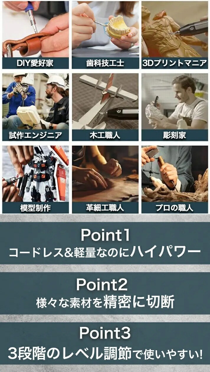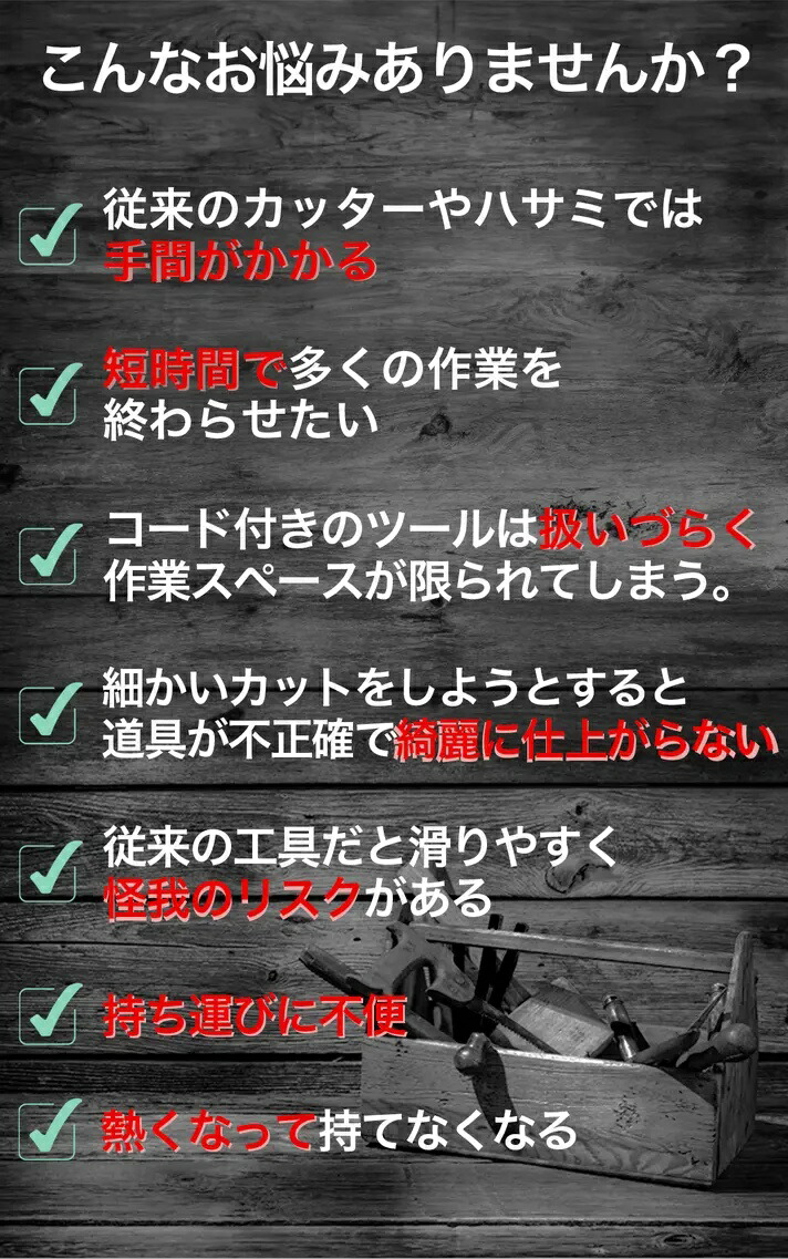 超音波カッターは、プロだけでなく初心者にも扱いやすい設計になっています。コードレスタイプなら持ち運びも楽で、どこでも快適に作業が可能です。
