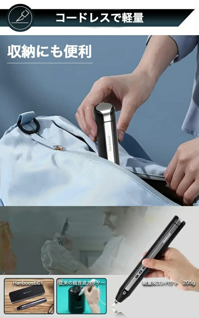 大型超音波カッターとは異なり、Hanboost C1はコードレスで、どこでも、いつでも自由に作業することができます。