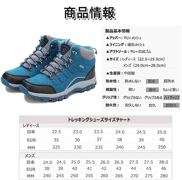 トレッキングシューズ レディース 登山 靴 通販 ブルー(男女兼用) グレー(男) パープル(女) バラレット(女) 22.5 23 23.5 24 24.5 25 25.5 26 26.5 27 27.5 28